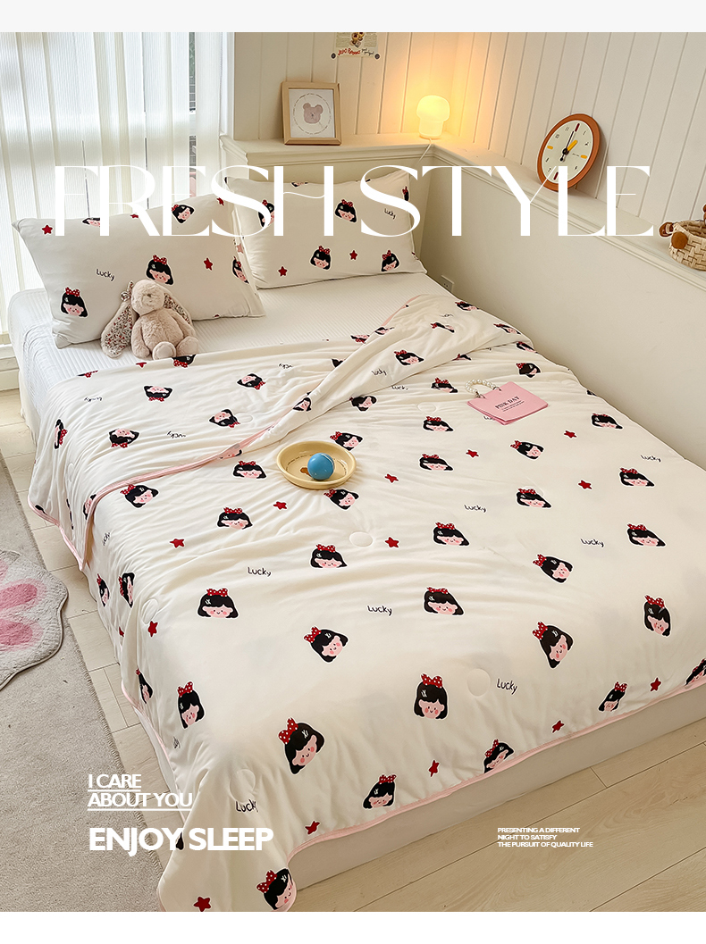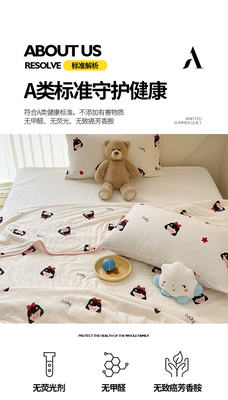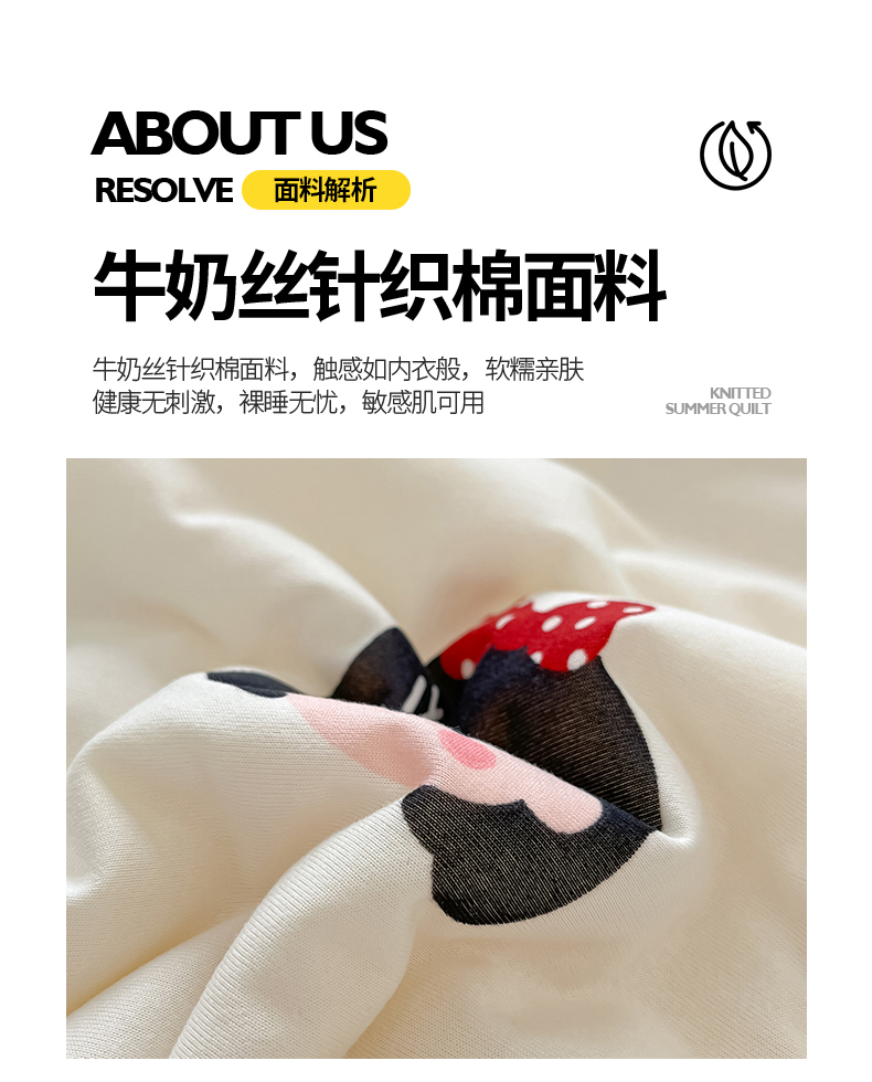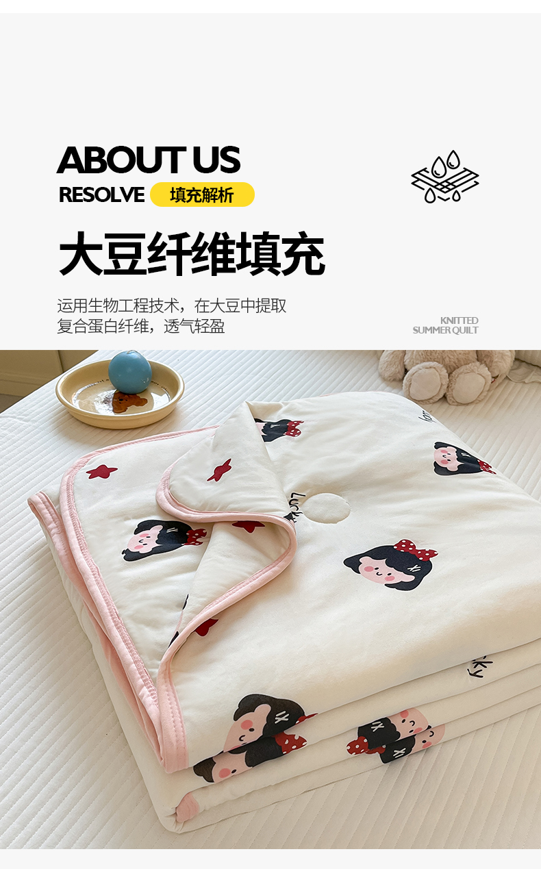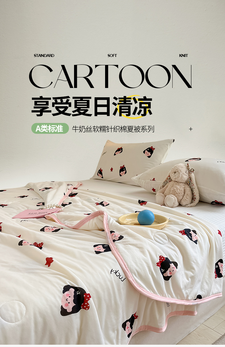 商品名称:桃子家居 2024新款A类高品质牛奶丝软糯针织棉夏被 针织棉-小可爱