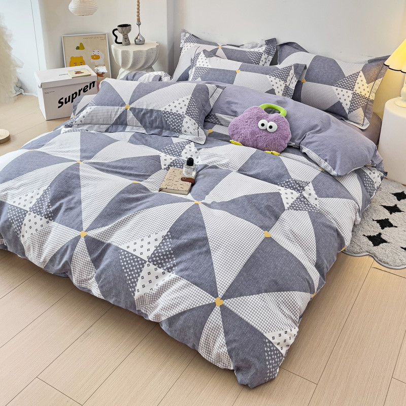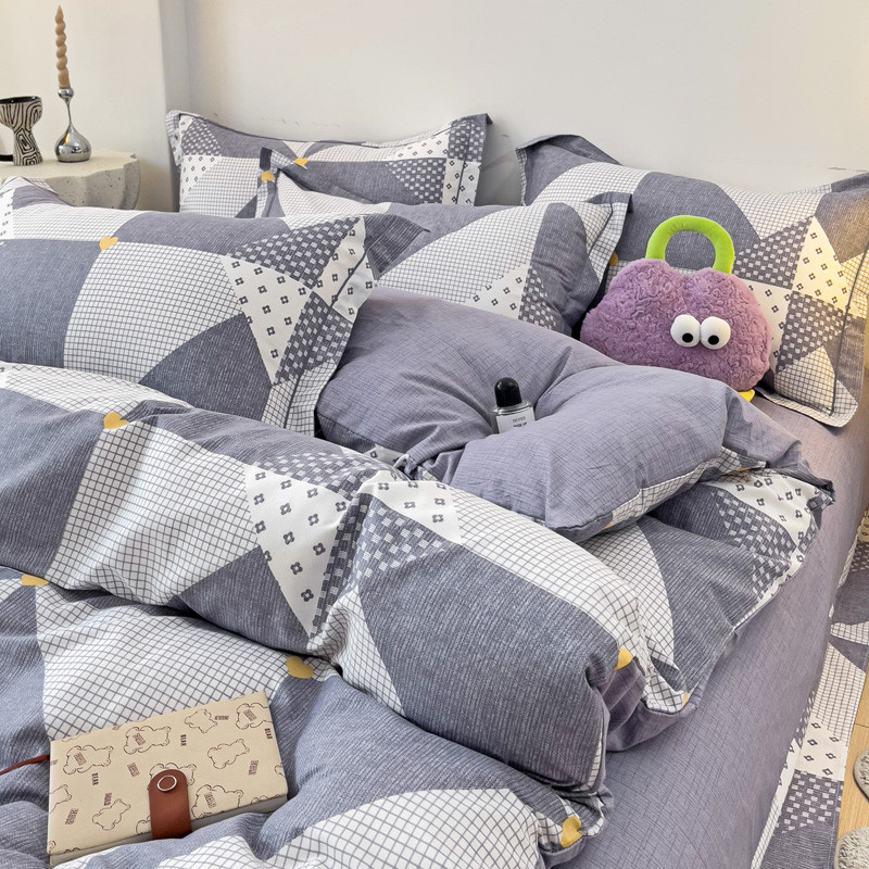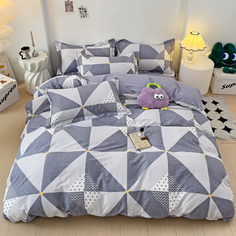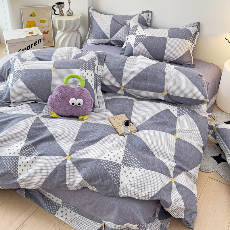 乐童 2024新款直播爆款13070纯棉印花吊边款一字绣四件套 菱形格