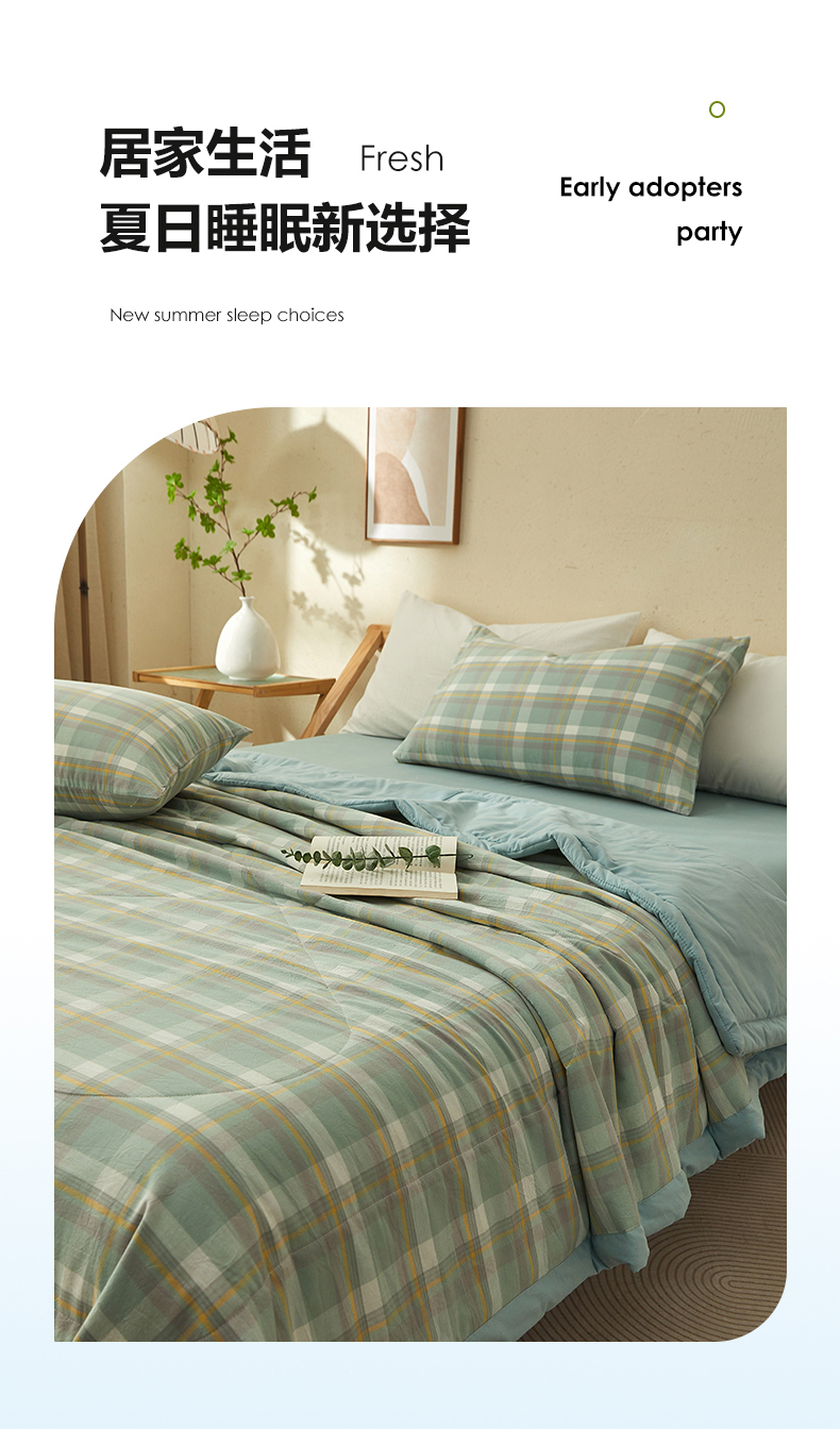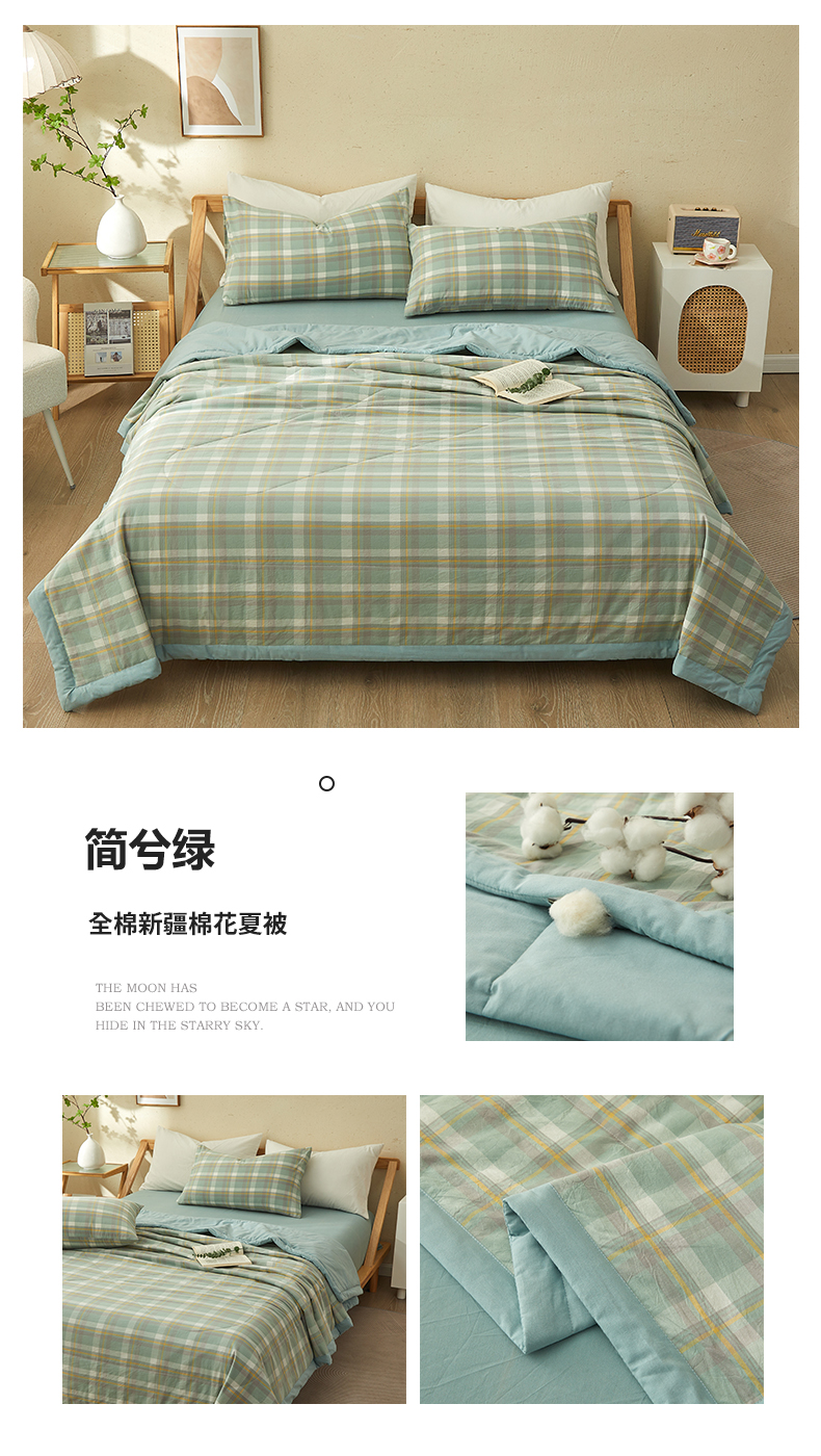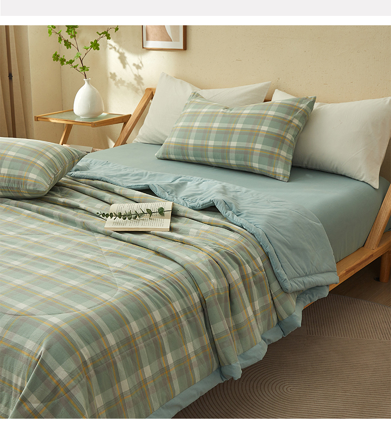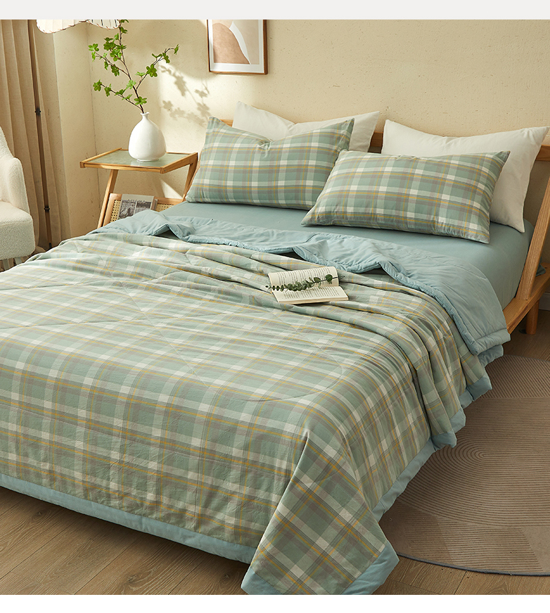 • 91家纺网 家纺一手货源 找家纺 暖阳 2025新款全棉色织棉花夏被 简兮绿