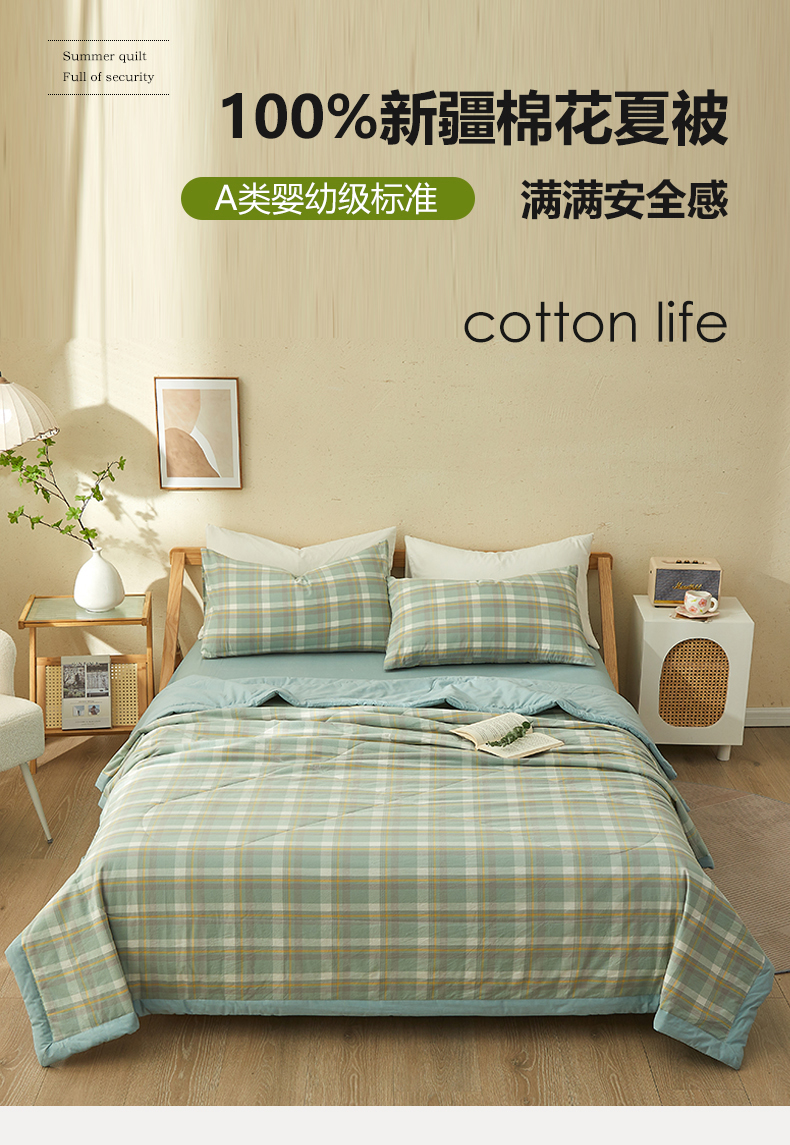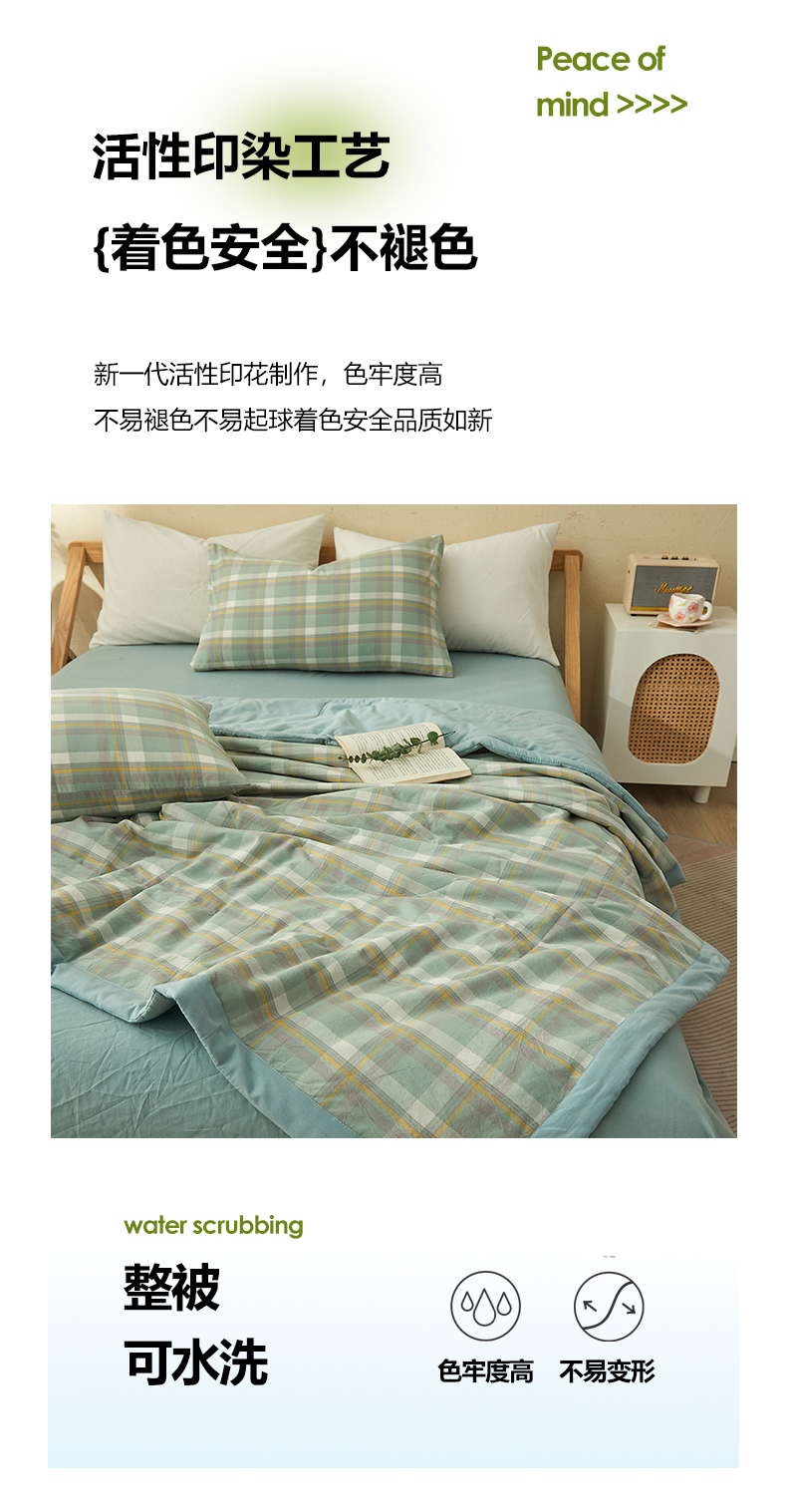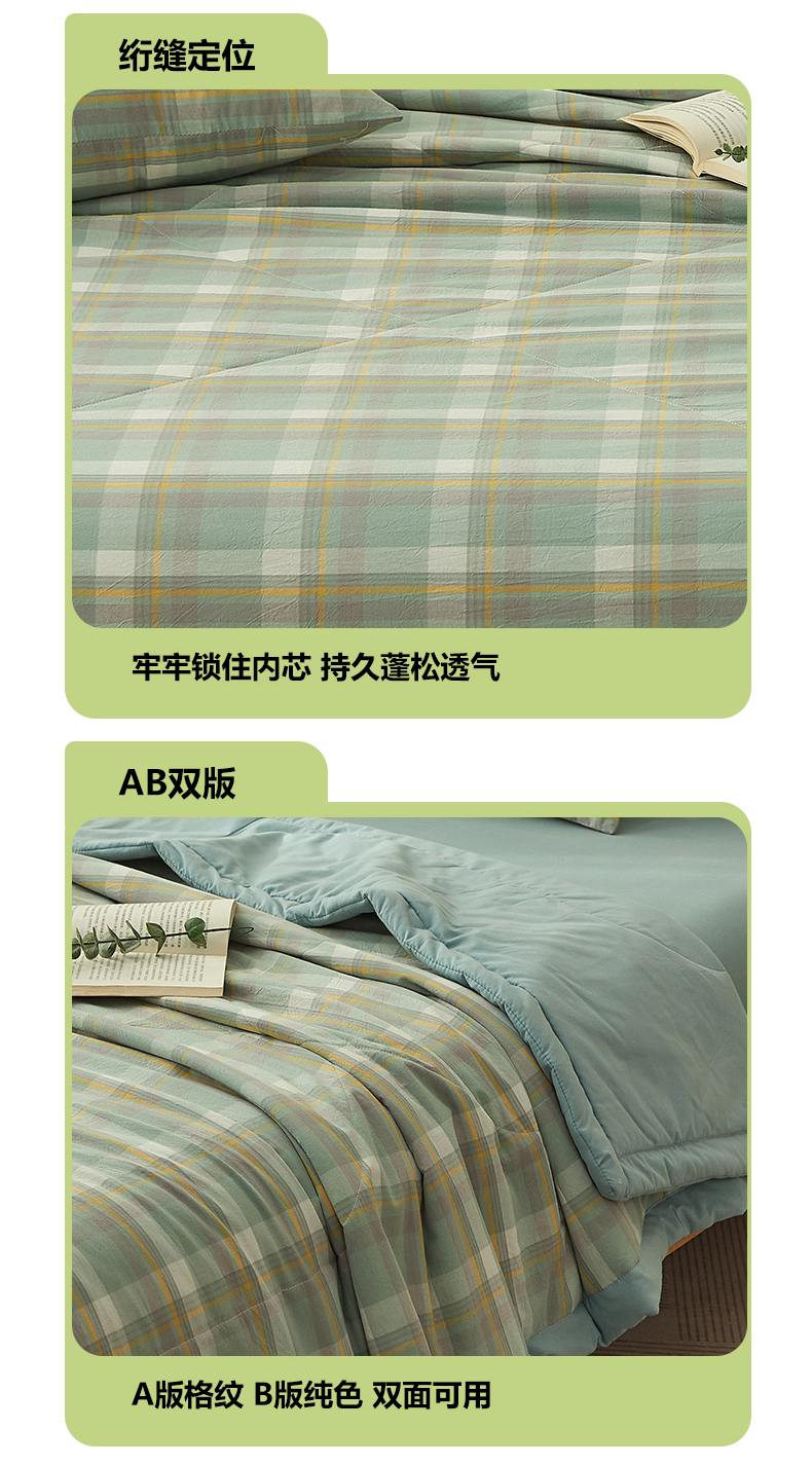 • 91家纺网 家纺一手货源 找家纺 暖阳 2025新款全棉色织棉花夏被 简兮绿