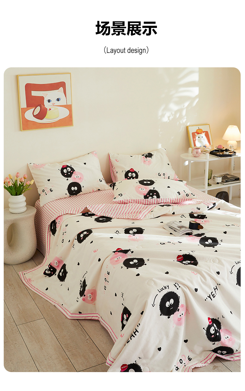 商品名称:暖阳 2025新款小红书网红风A类里外全棉夏凉被 煤球伙伴