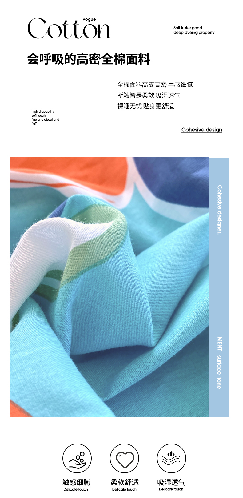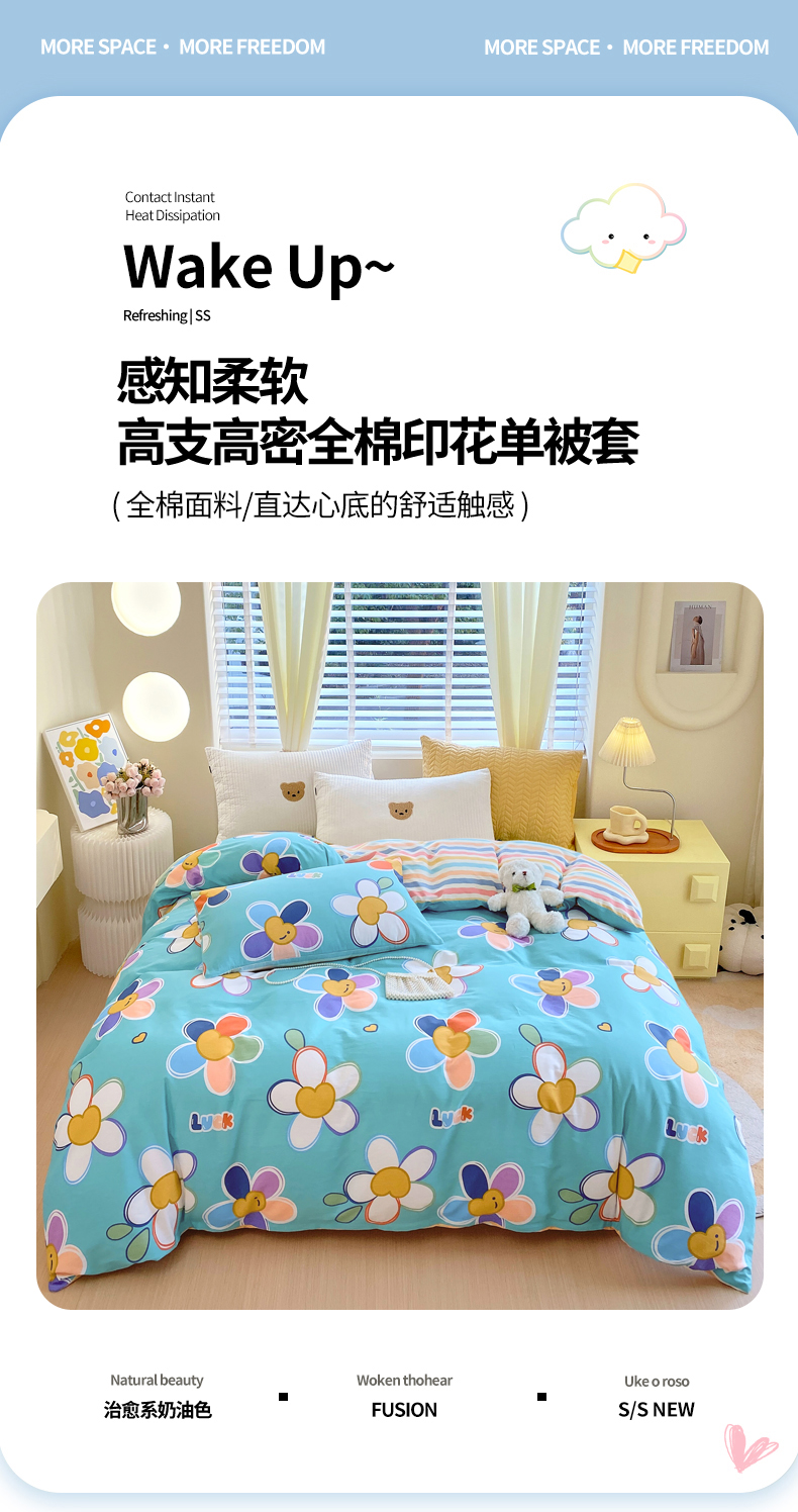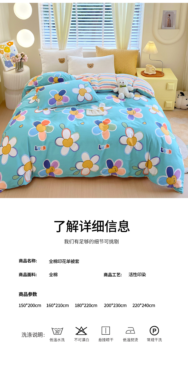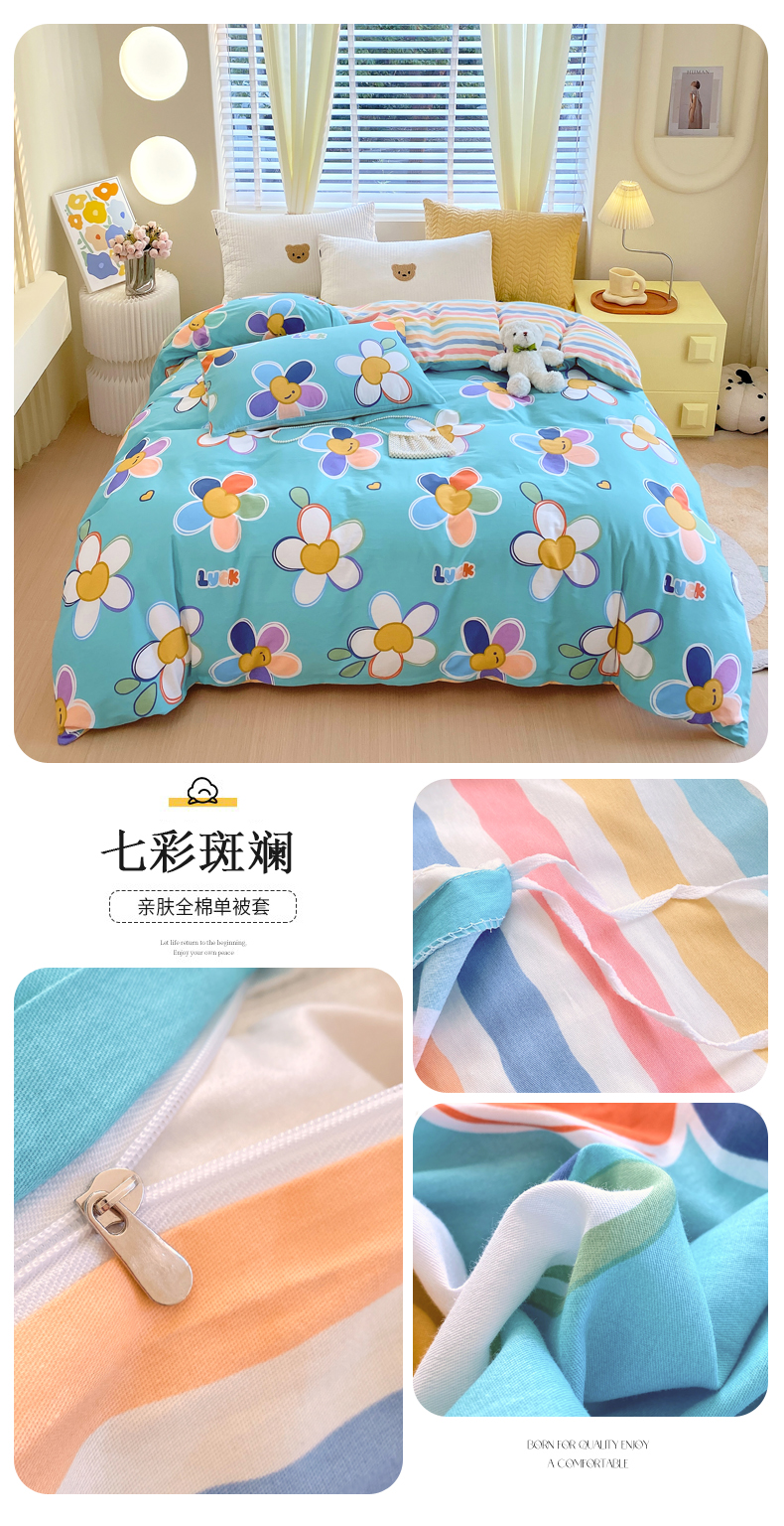 商品名称:洺兰 2025年全棉喷气印花四件套纯棉床单床笠款小清新花卉北欧风--单被套 七彩斑斓