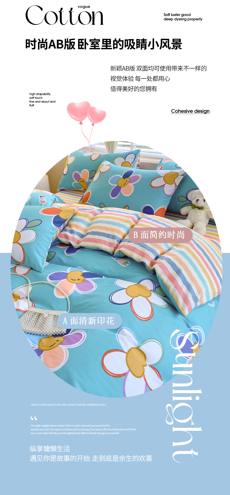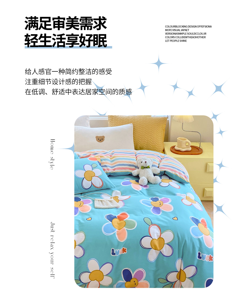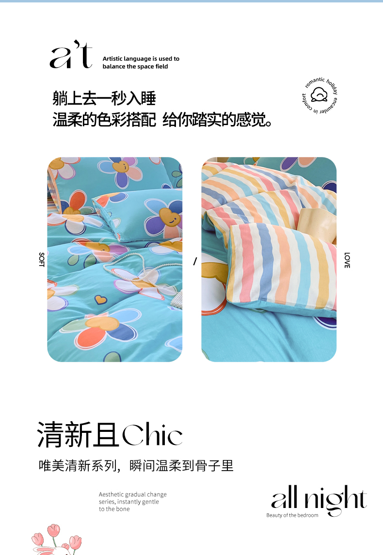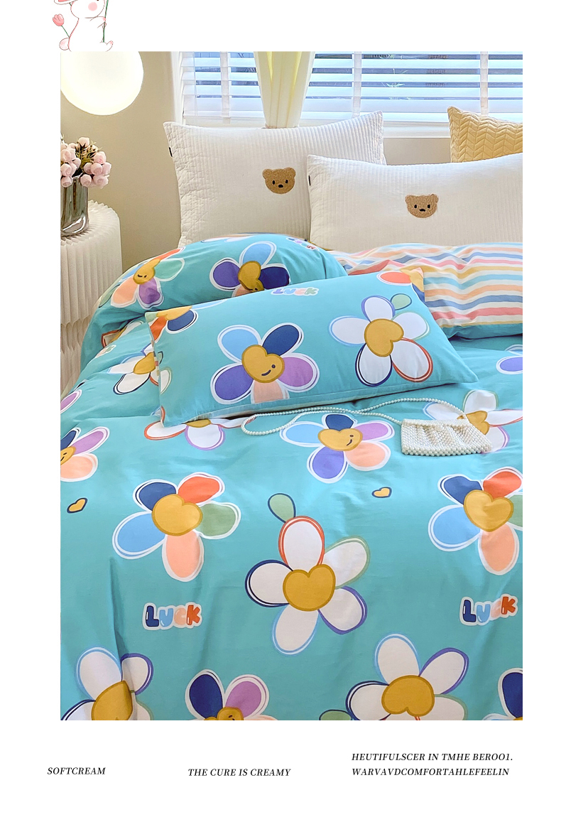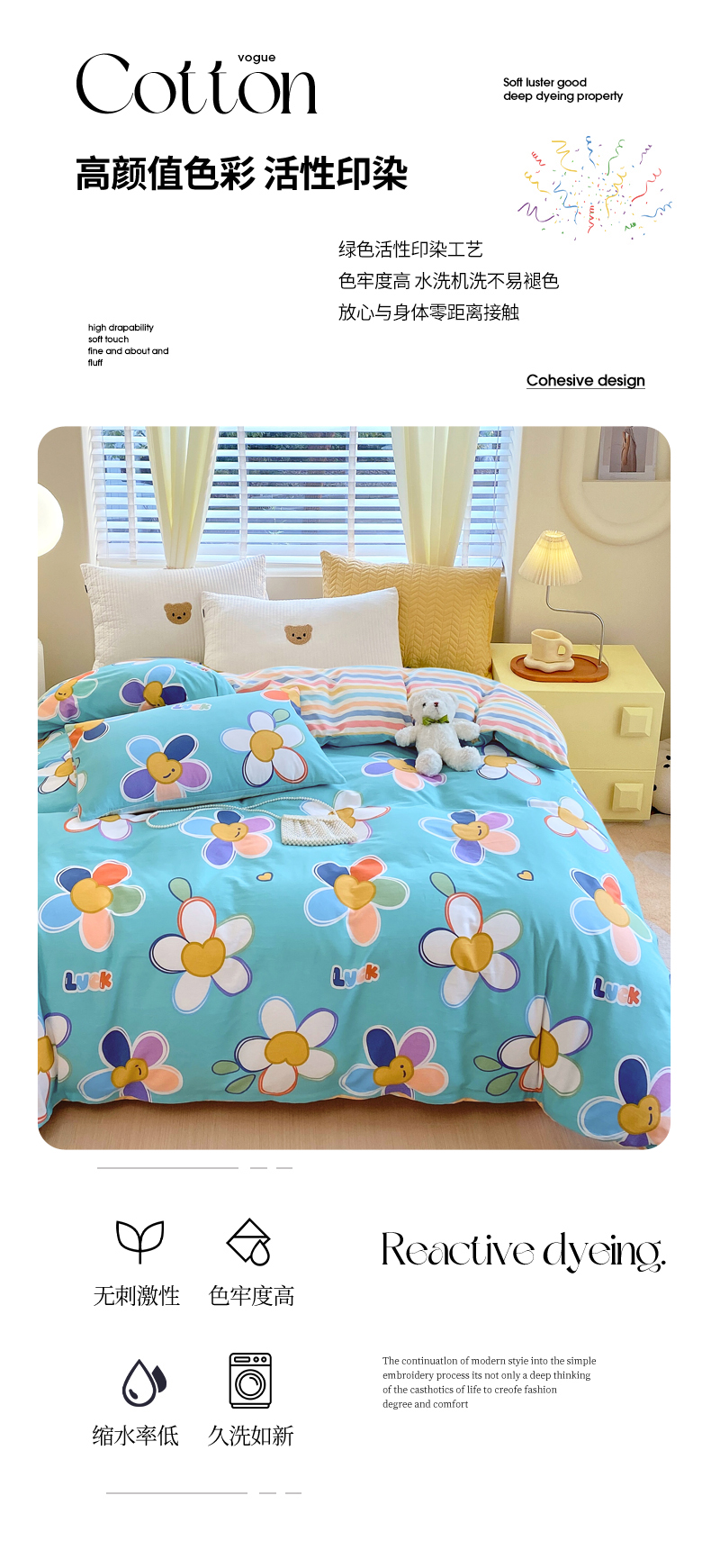 商品名称:洺兰 2025年全棉喷气印花四件套纯棉床单床笠款小清新花卉北欧风--单被套 七彩斑斓