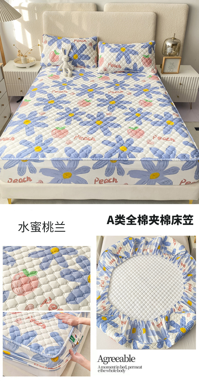 九亭家纺 2024新款A类全棉抗菌夹棉床笠 全棉-水蜜桃兰