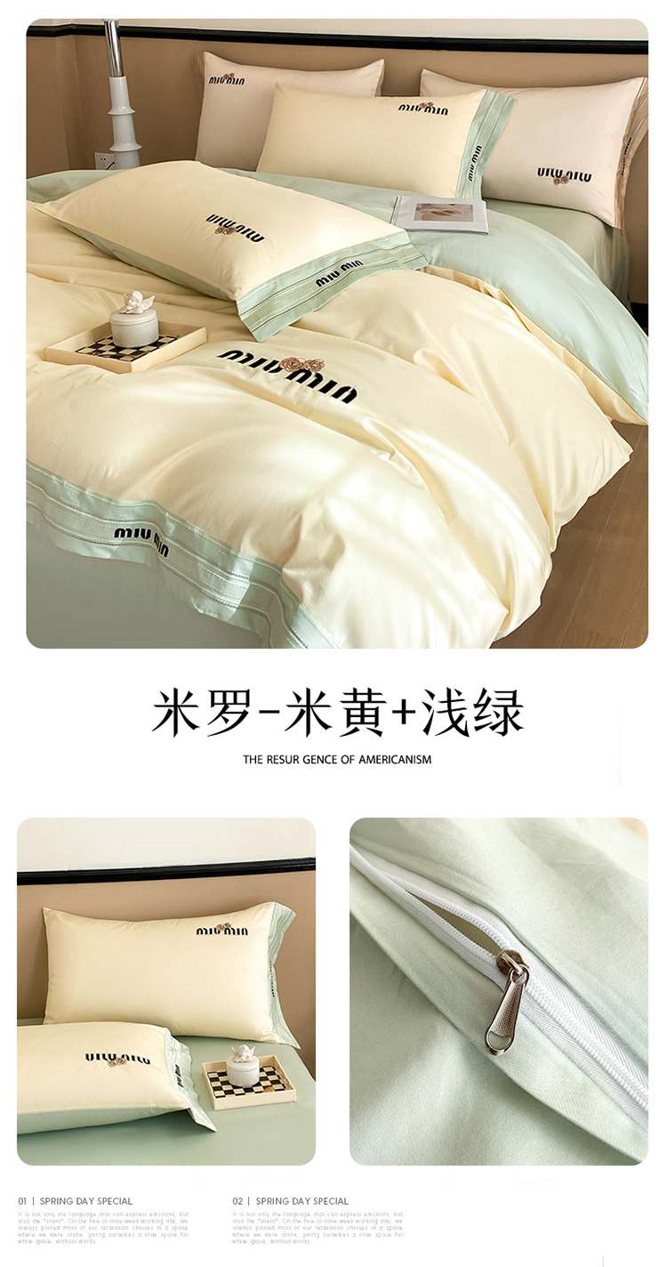 当前位置: 91家纺网 > 商品网购 > 床品套件 > 四件套 > 全棉普通四件套 > 慕色 2024新款全棉刺绣四件套-米罗 米罗-米黄+浅绿