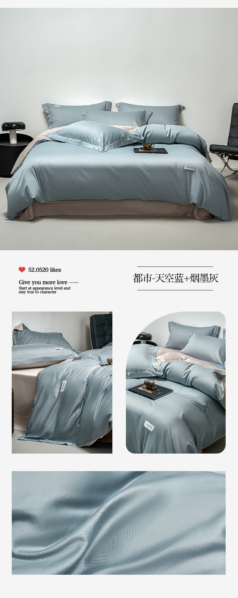 当前位置: 91家纺网 > 商品网购 > 床品套件 > 四件套 > 全棉普通四件套 > 秀色家纺 2025新款60支贡缎新疆长绒棉全棉纯棉三件套轻奢床品床单床笠被套床上四件套 都市-天空蓝+烟墨灰