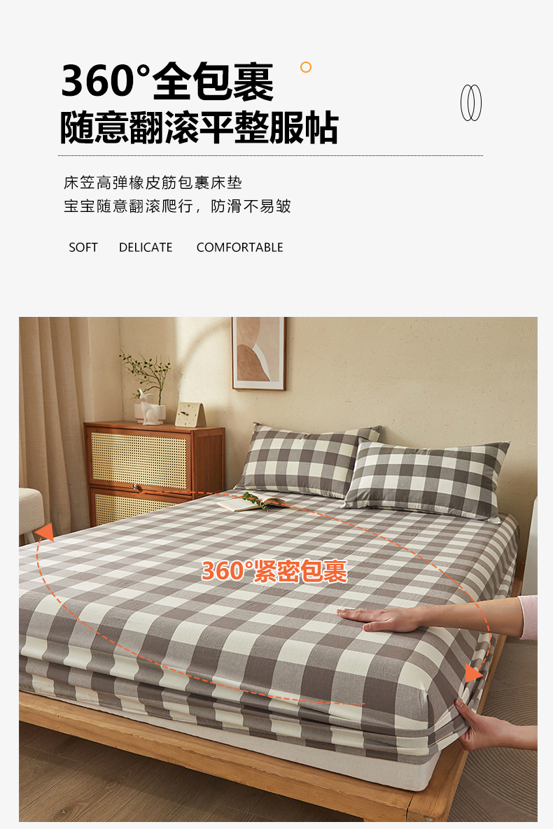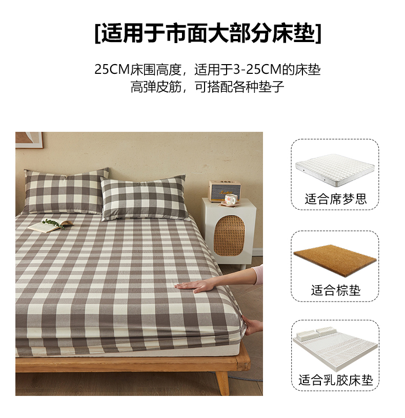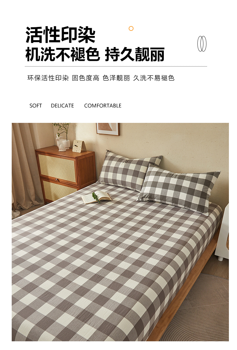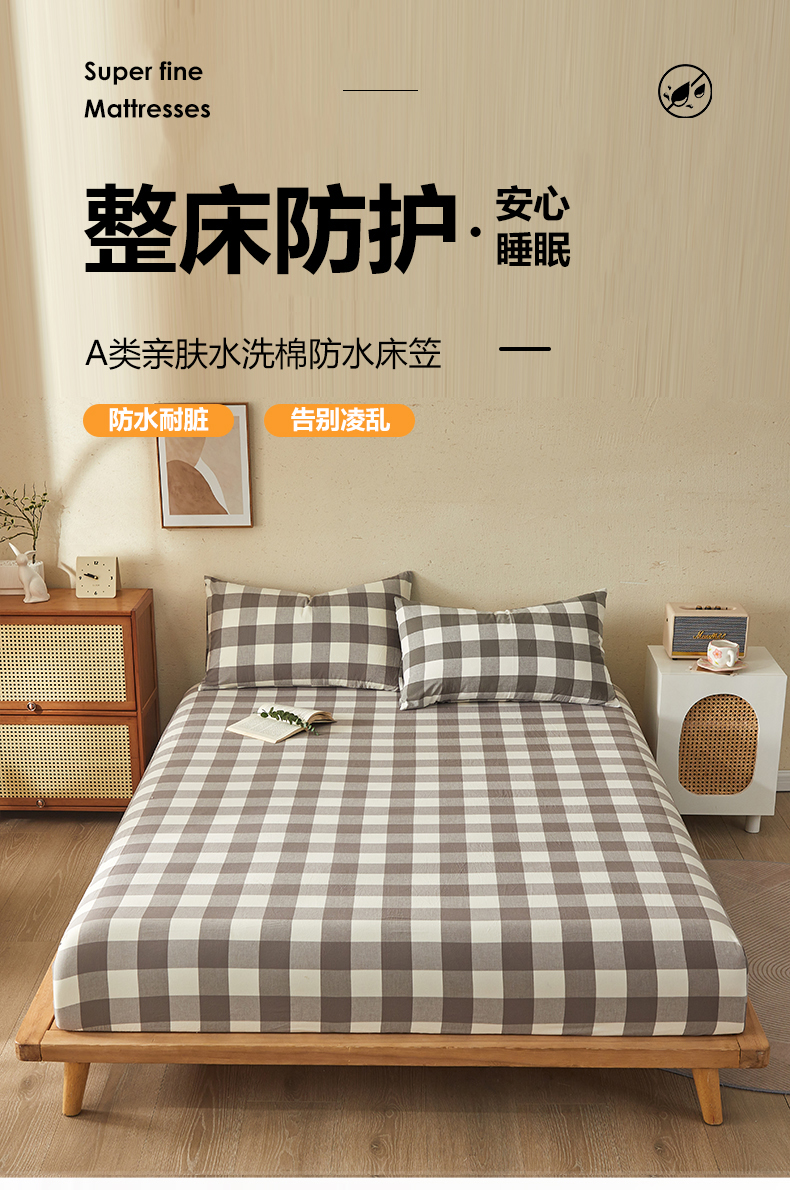 商品名称:暖阳 2025新款A类无印风防水床笠 单床笠 咖中格