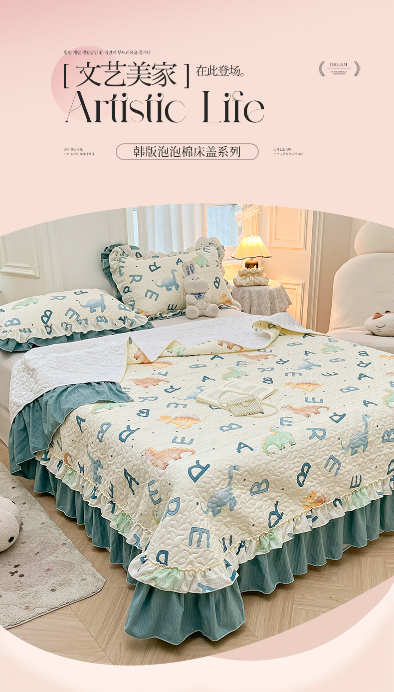 恒爱家纺 2024新款韩版泡泡棉系列单床盖 恐龙世界
