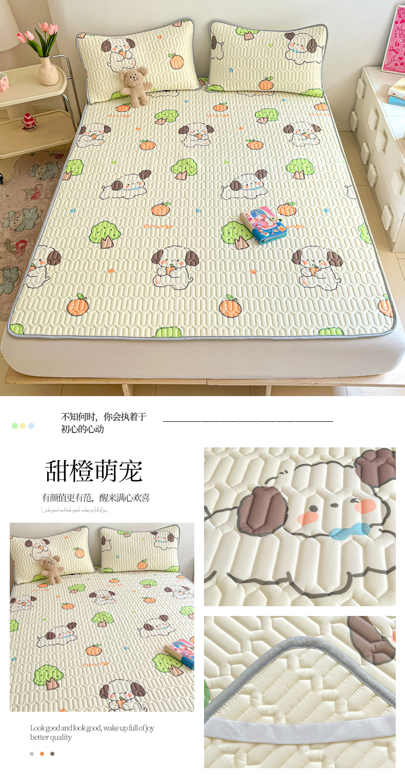 商品名称:沐慕 2024新款小清新印花乳胶凉席 甜橙萌宠