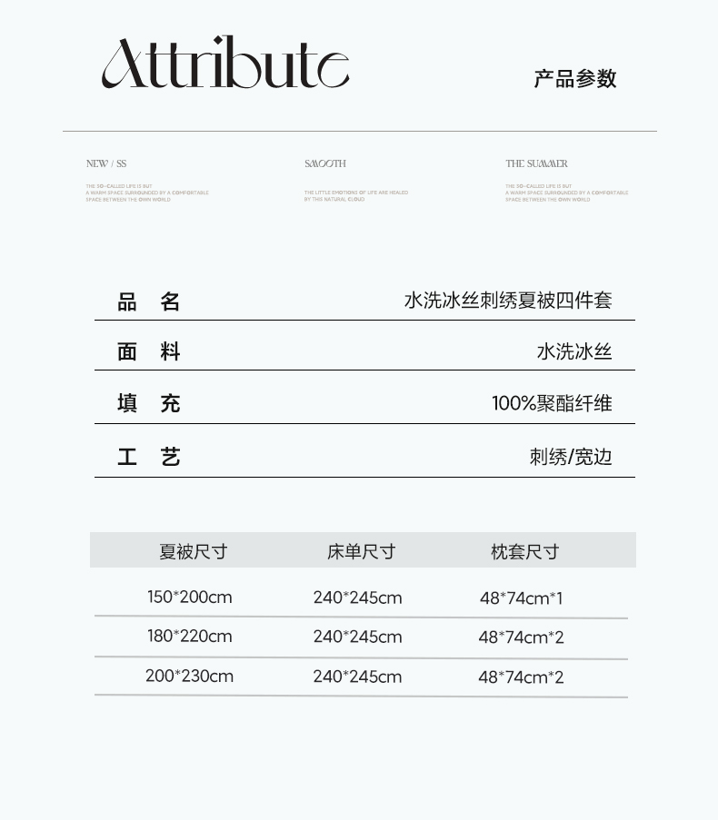 200X230cm夏被四件套 | ¥80.00 |