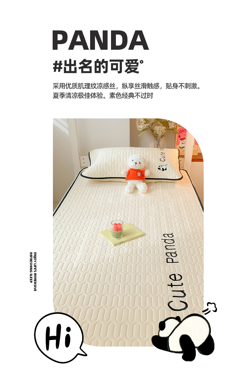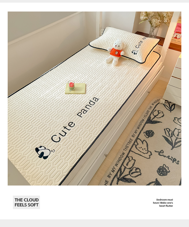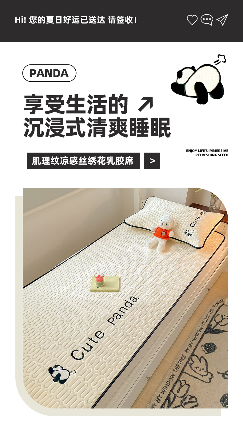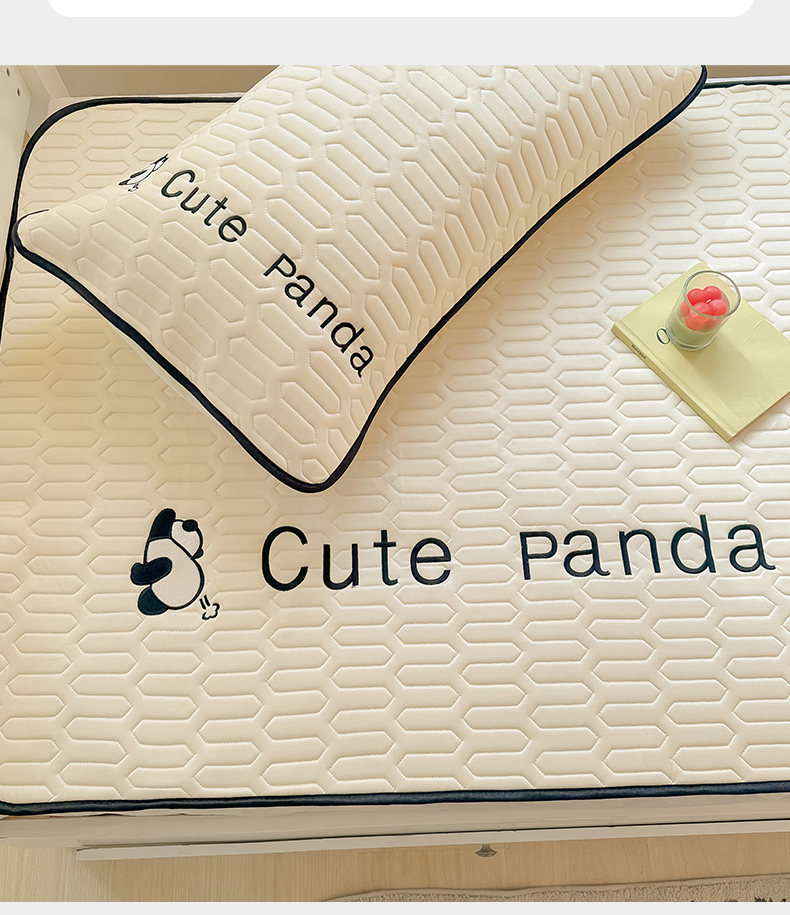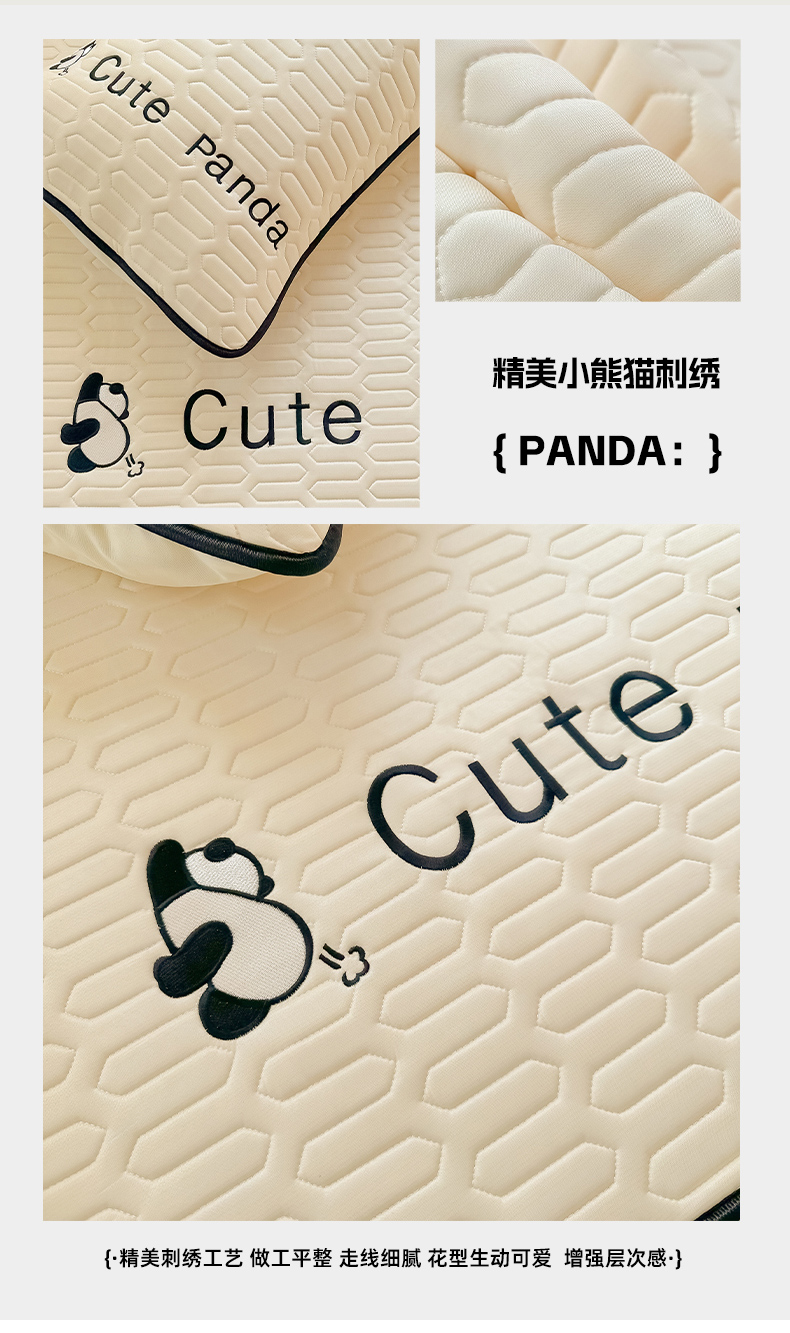 商品名称:多乐家纺 2024新款学生床肌理纹凉感丝绣花乳胶席 panda-奶昔米