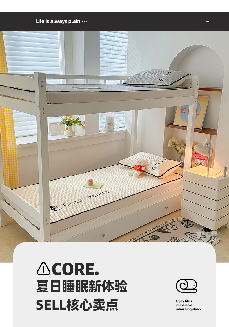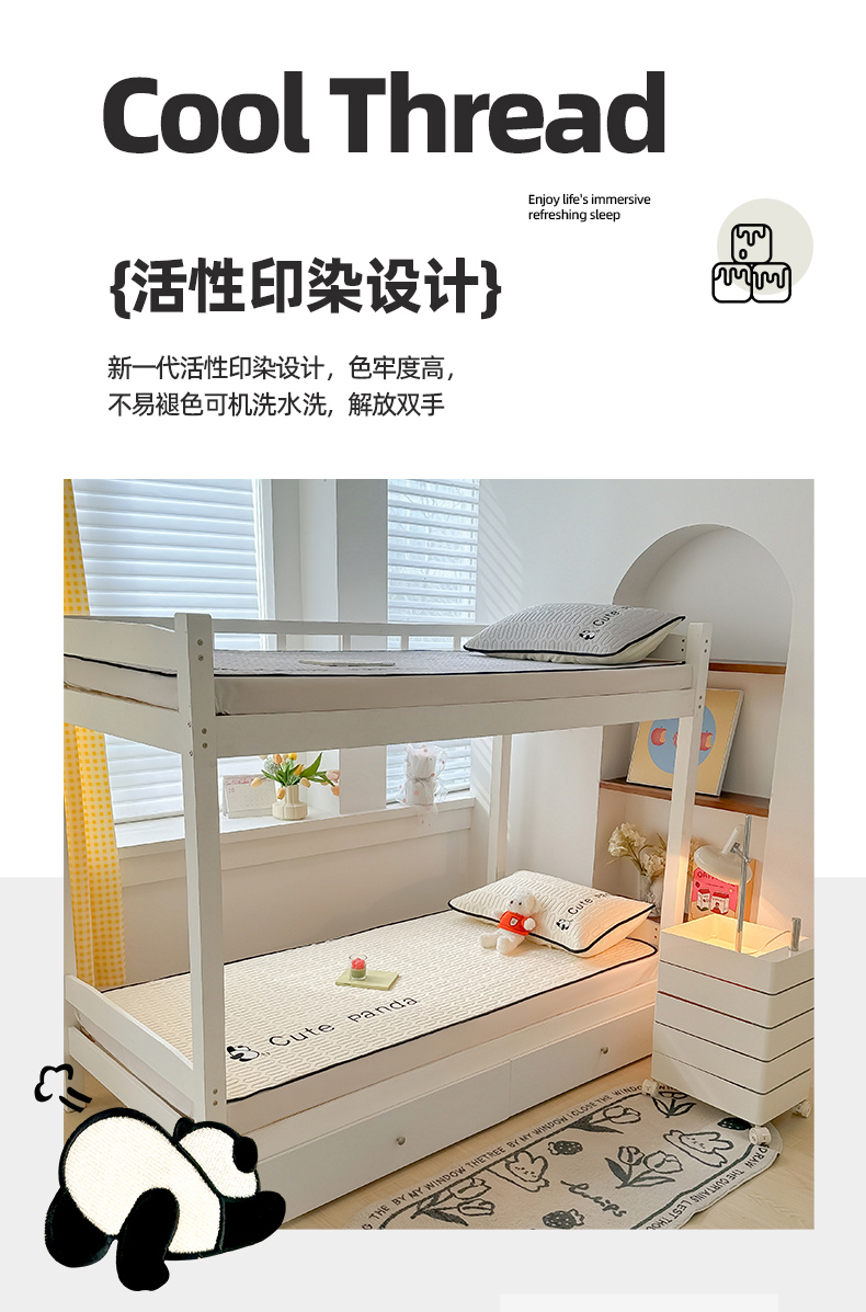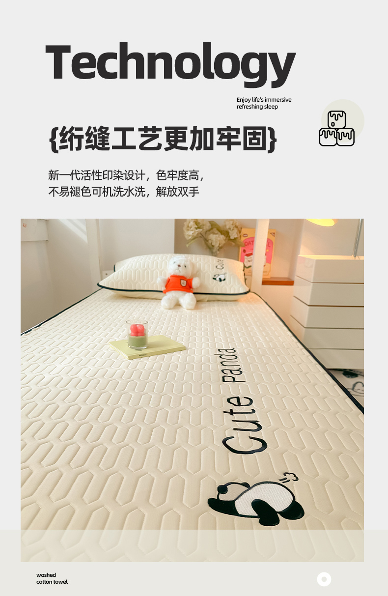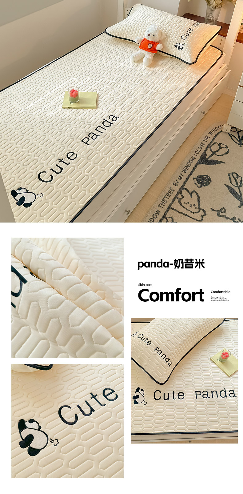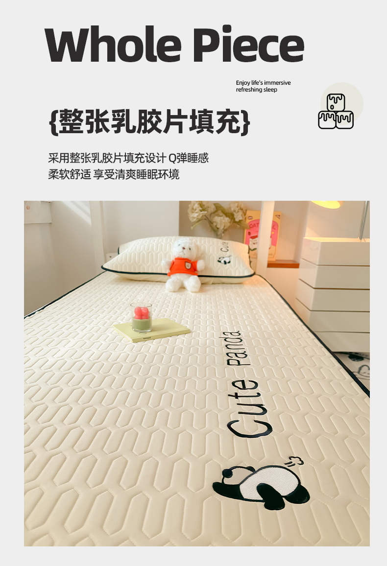 商品名称:多乐家纺 2024新款学生床肌理纹凉感丝绣花乳胶席 panda-奶昔米