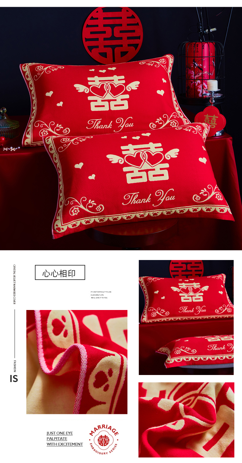 (总)美宜家 2025新款四层全棉纱布婚庆枕巾枕套枕头,百年好合,吉祥如意,喜上眉梢,喜气洋洋,喜结良缘,喜结连理,心心相印,欢欢喜喜,浪漫爱情,双喜临门,真爱永恒,花好月圆