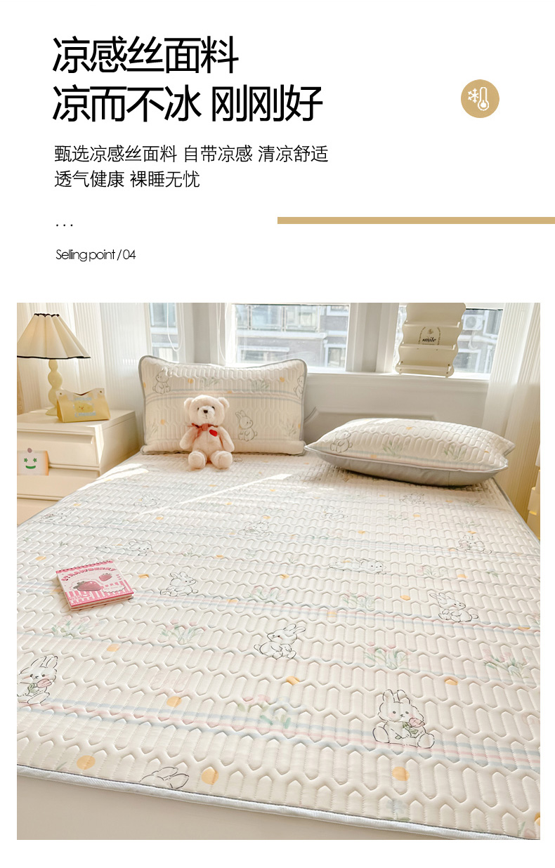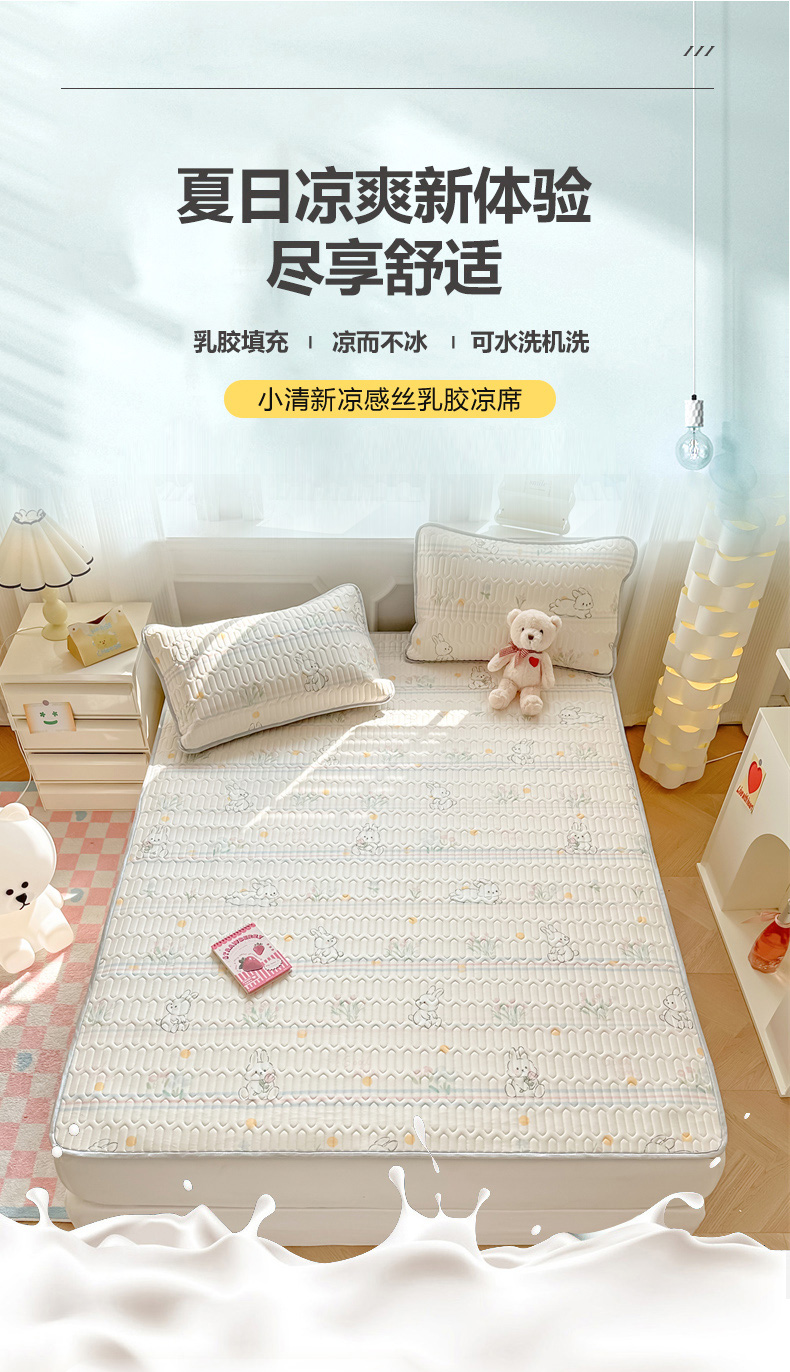 商品名称:慕尚家纺 2025新款凉感丝印花乳胶凉席 粉黛小兔