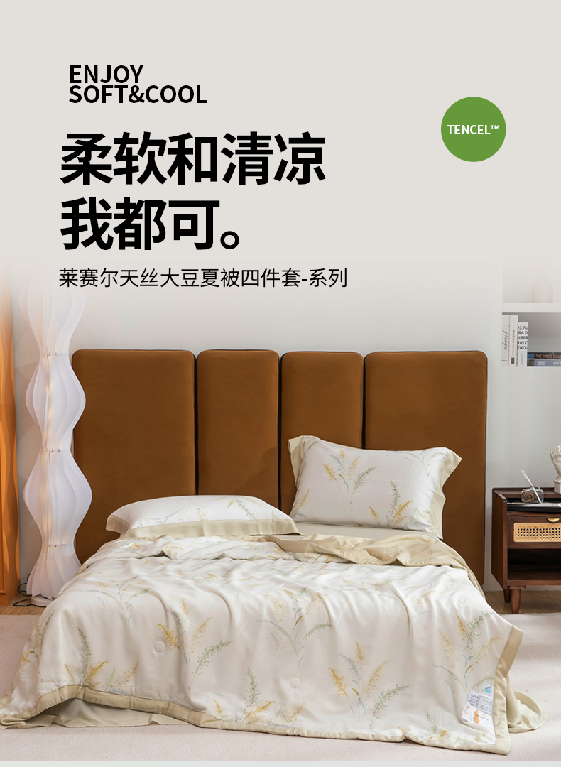 黛舒家居 2024新款莱赛尔天丝大豆夏被四件套 宛夏