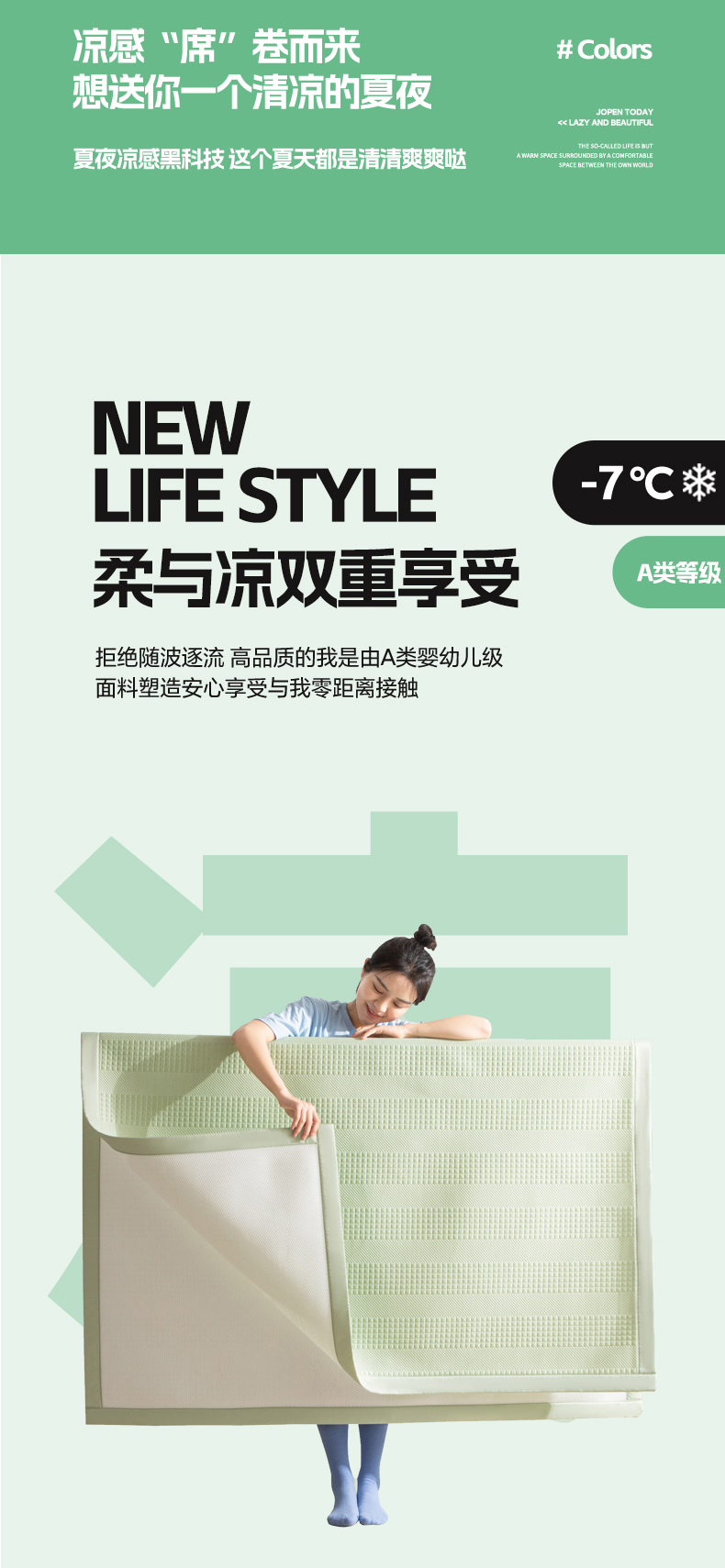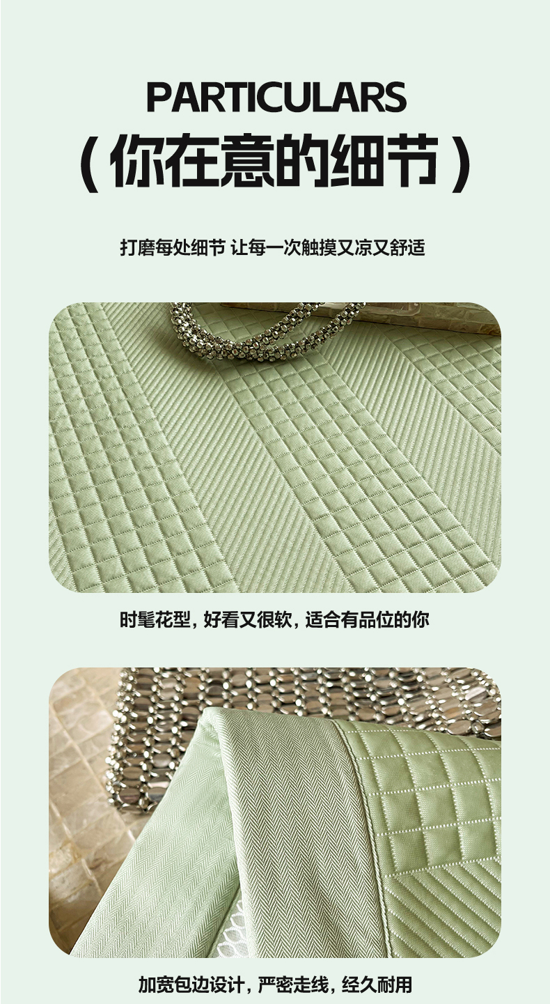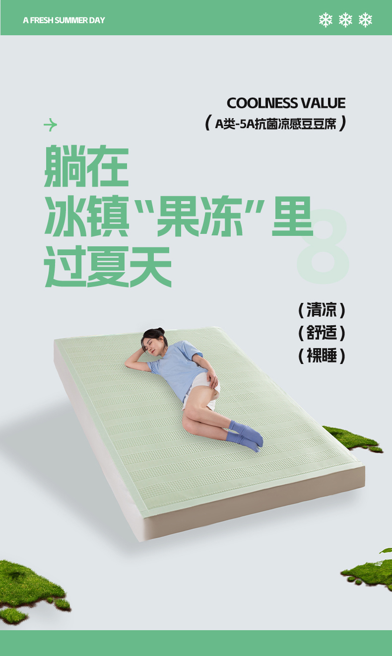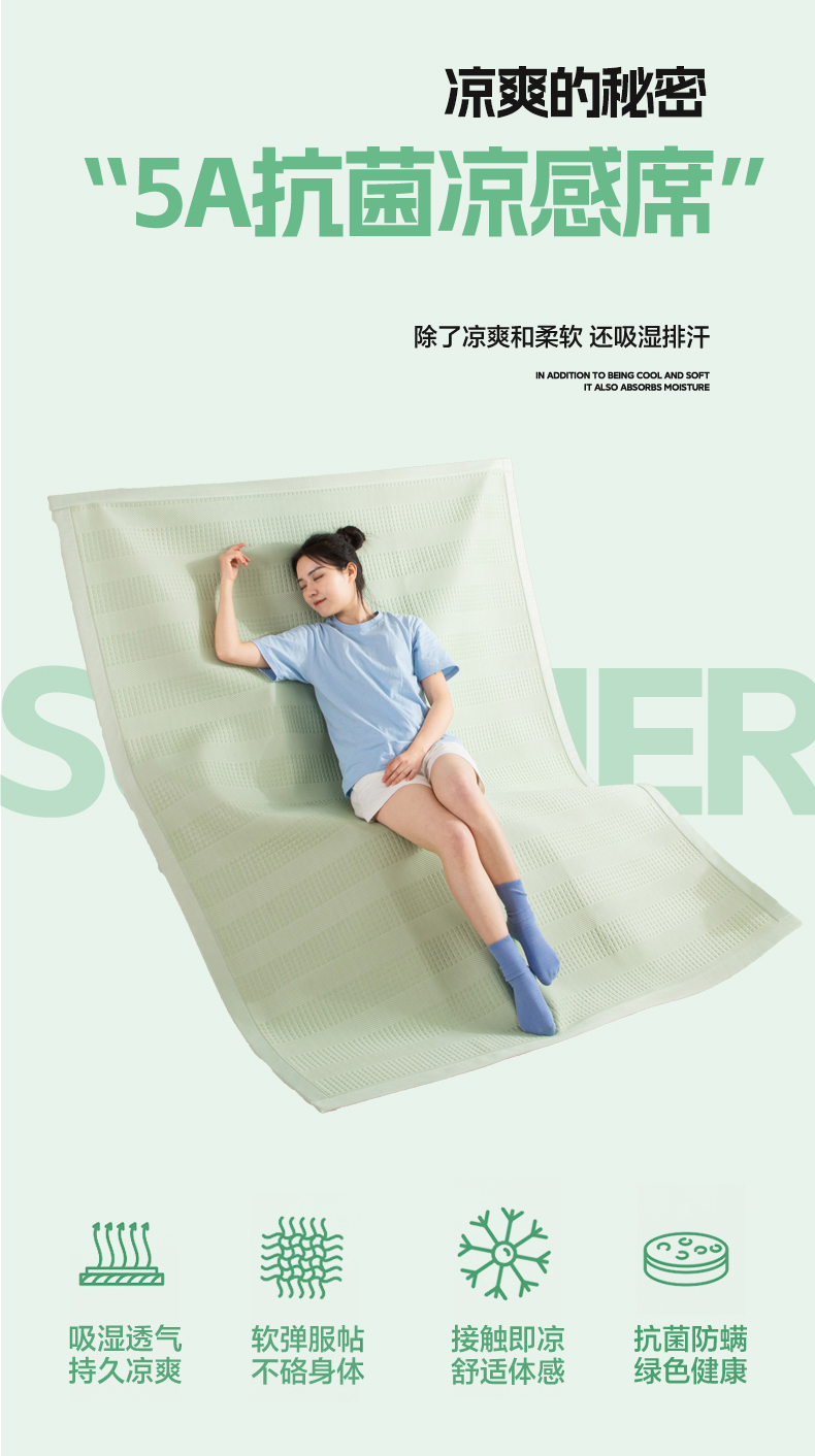 商品名称:全季家居 2024新款5A速冷PE简约系列凉豆豆席 格调-果绿-床席款