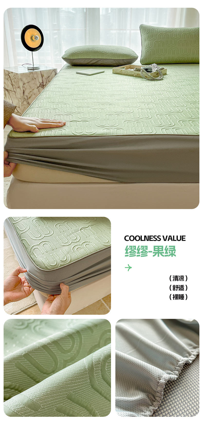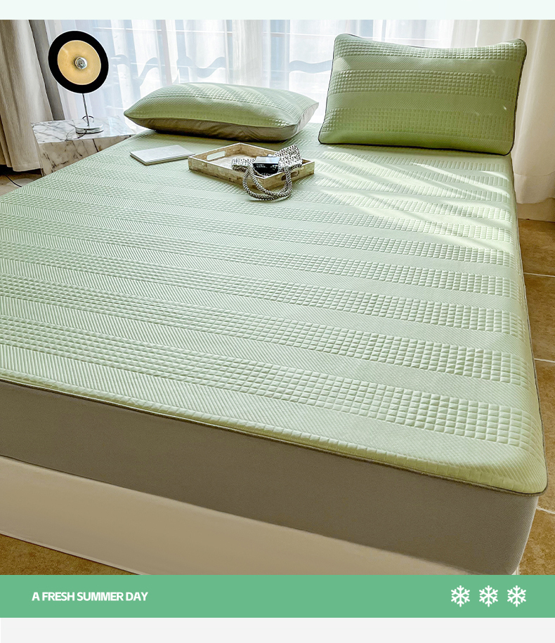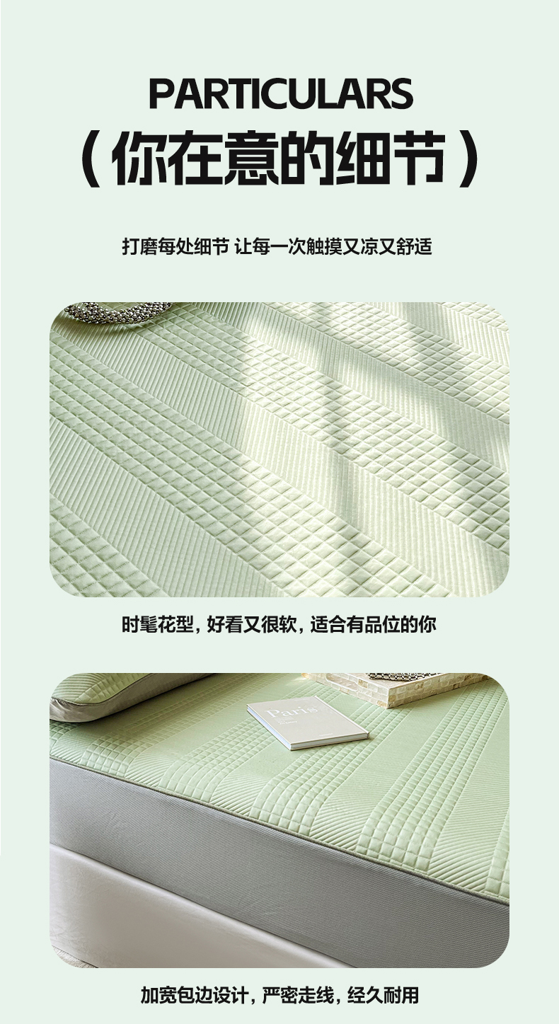 商品名称:全季家居 2024新款5A速冷PE简约系列凉豆豆席 格调-果绿-床笠款