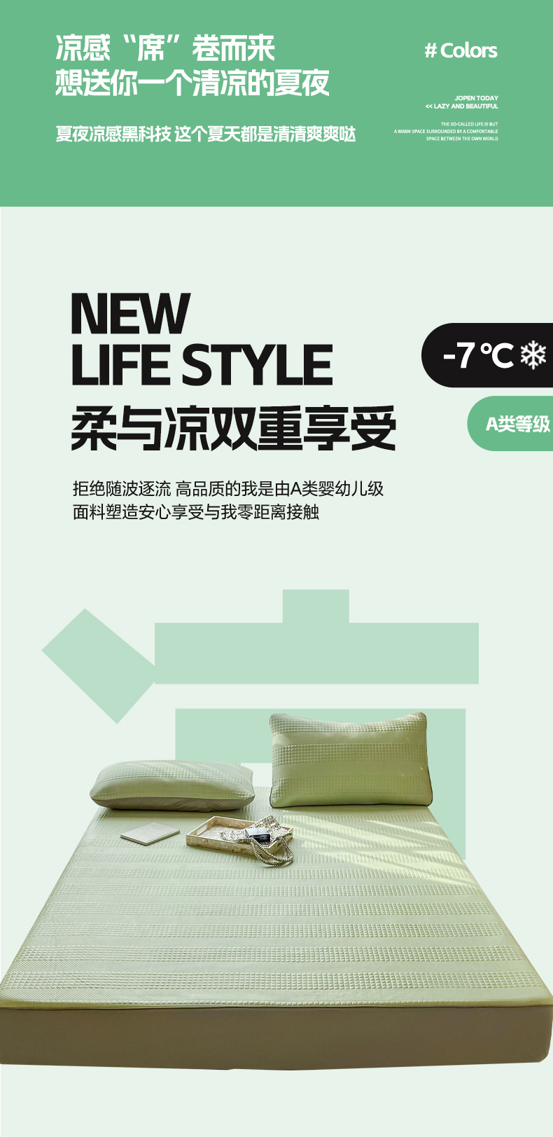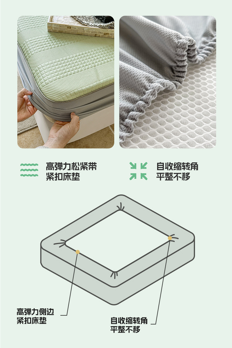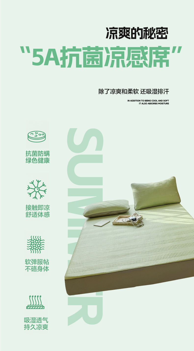 商品名称:全季家居 2024新款5A速冷PE简约系列凉豆豆席 格调-果绿-床笠款