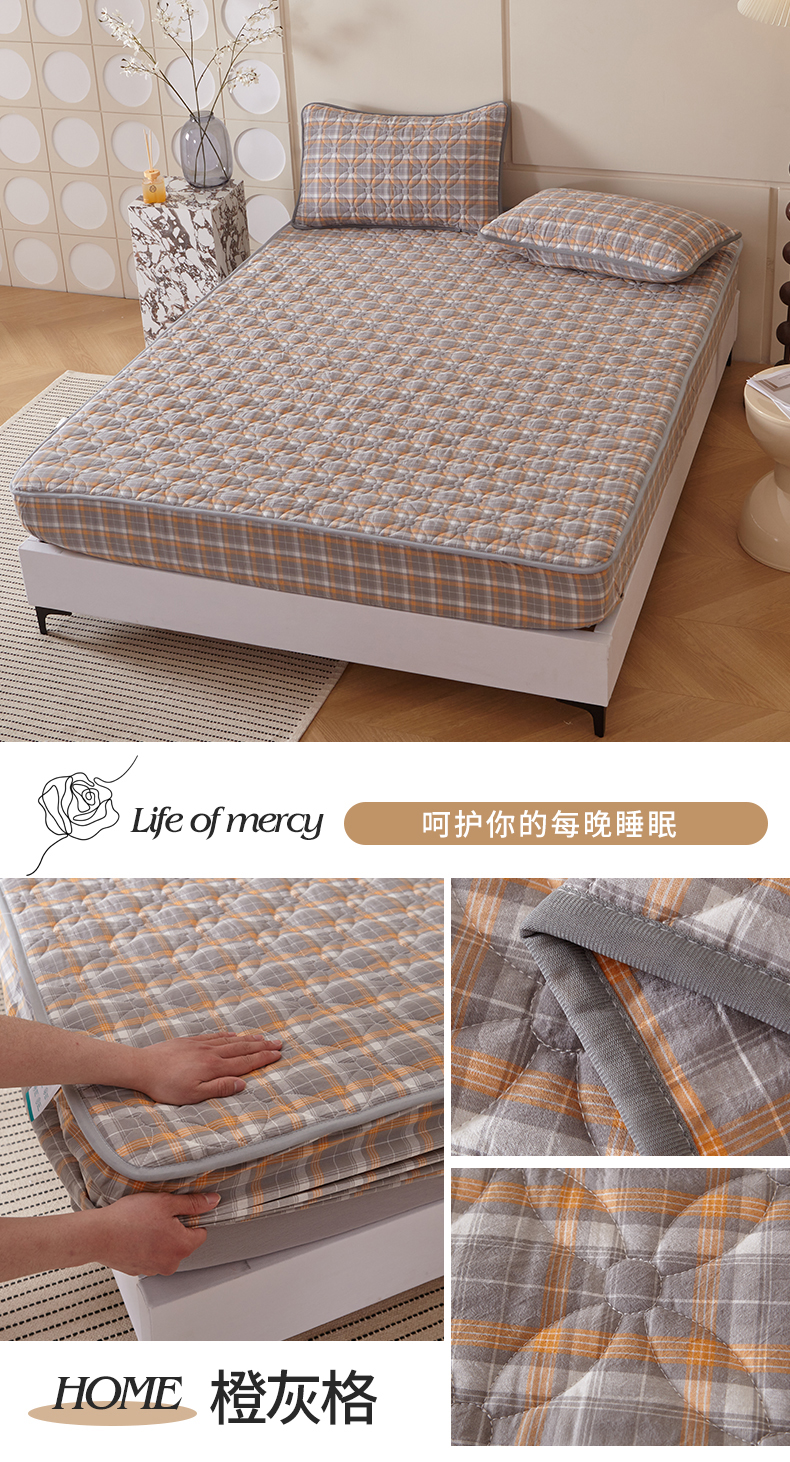 商品名称:杜先生 2024新款无印风水洗棉夹棉床笠 橙灰格
