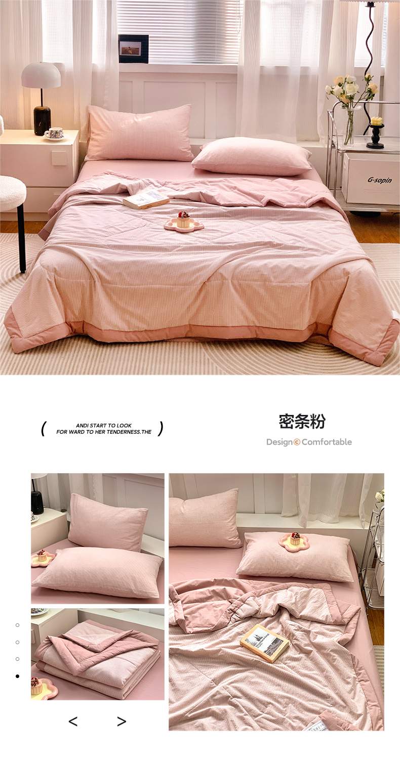 当前位置: 91家纺网 > 商品网购 > 床品套件 > 四件套 > 水洗棉四件套 > 水洗的故事2025新款A类色织水洗棉丝夏被四件套系列 密条粉