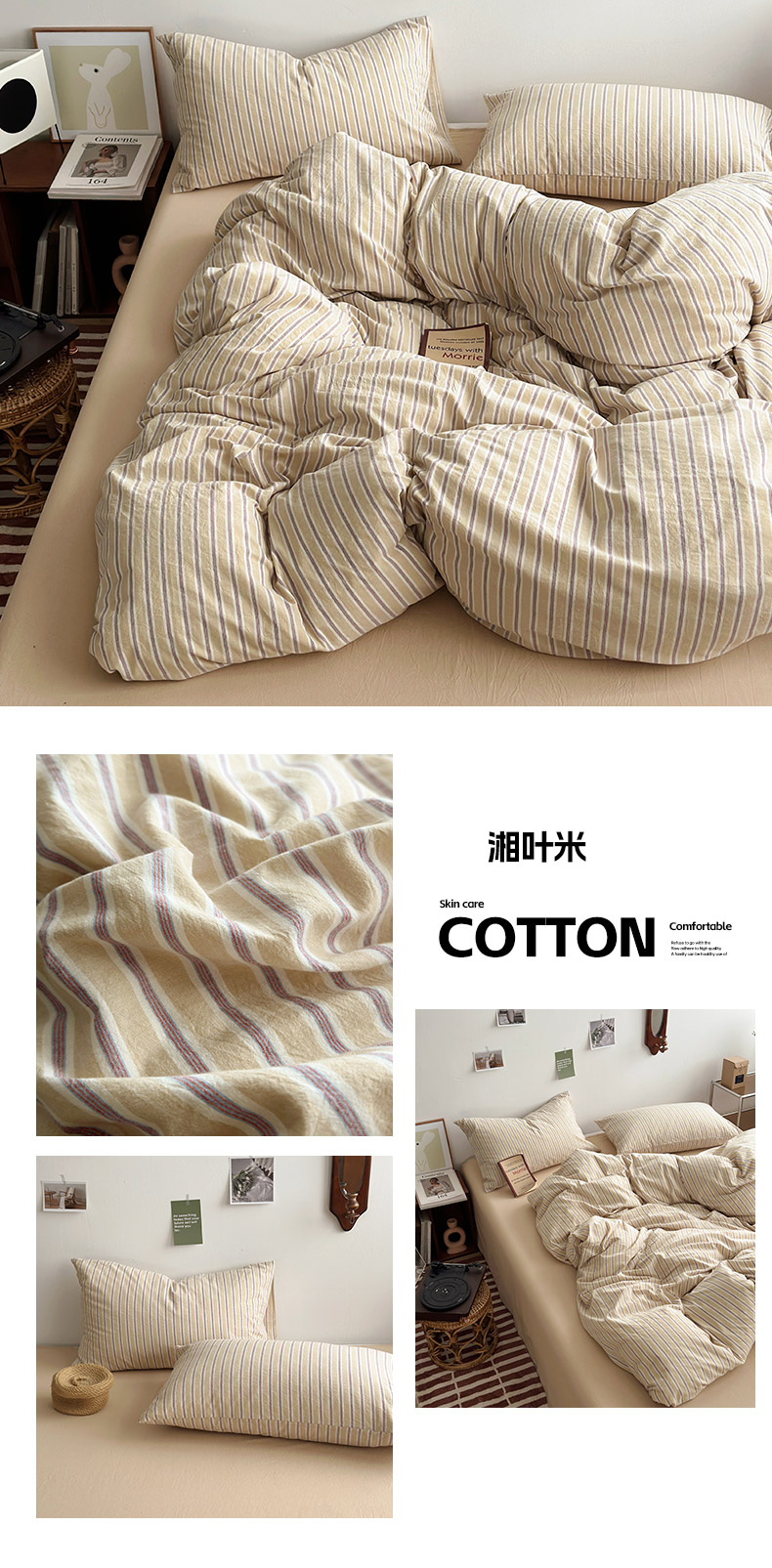 (总)水洗的故事(原有乐家) 2025新款秋冬全棉贡缎色织提花条纹款四件套,从简-灰,从简-咖,从简-奶橘,森沐,织麦