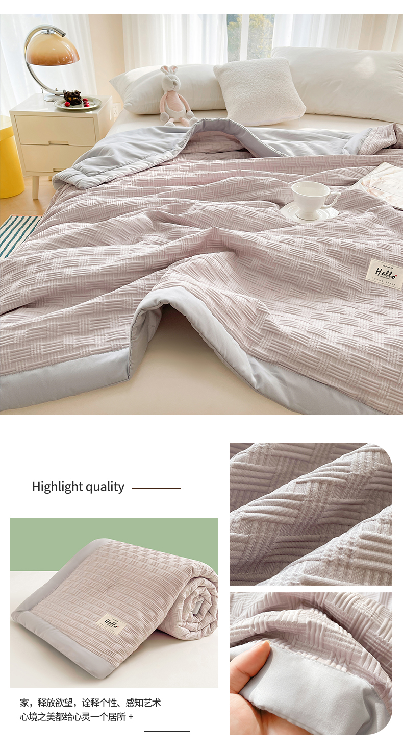 花言狐语 2025新款水洗华夫格宽包边大豆夏被 饼干花-绅士灰