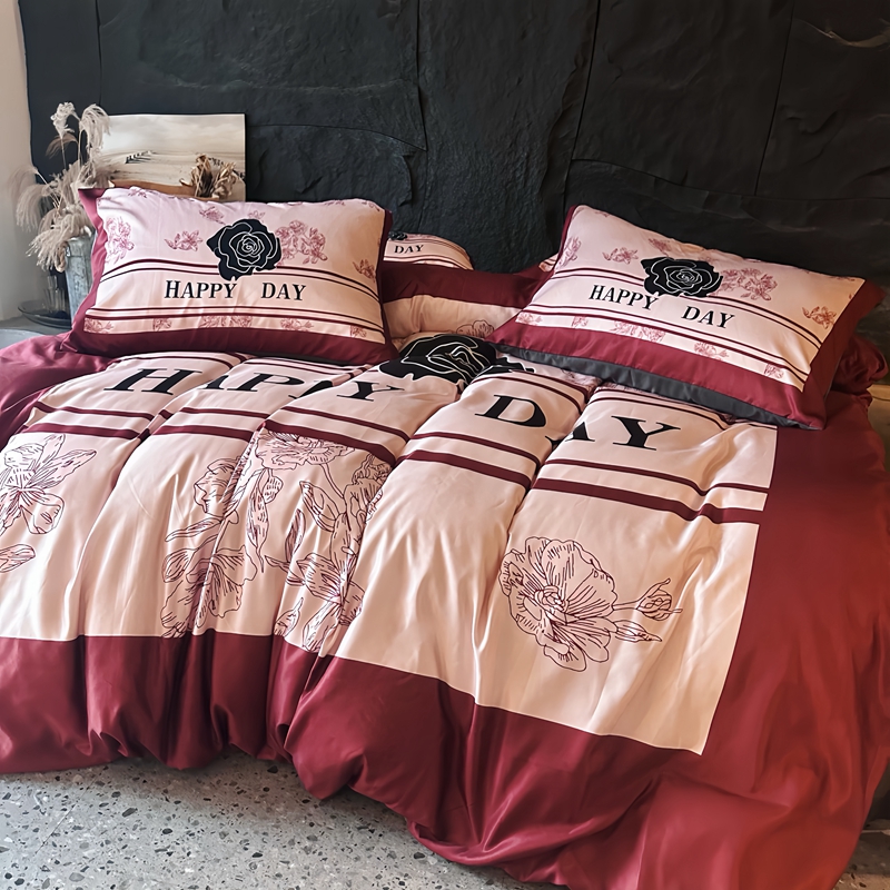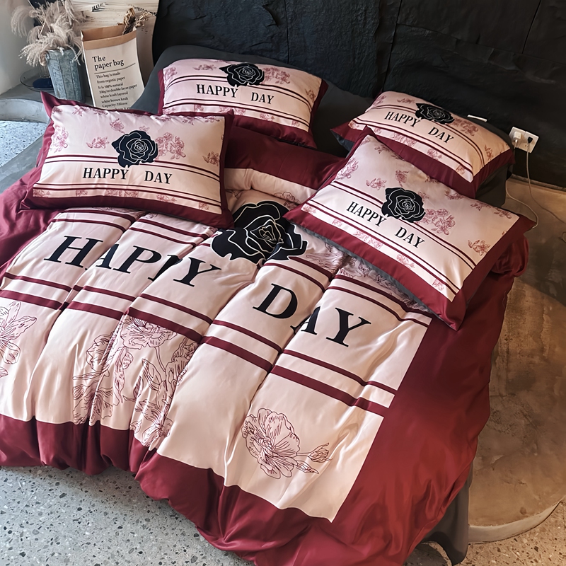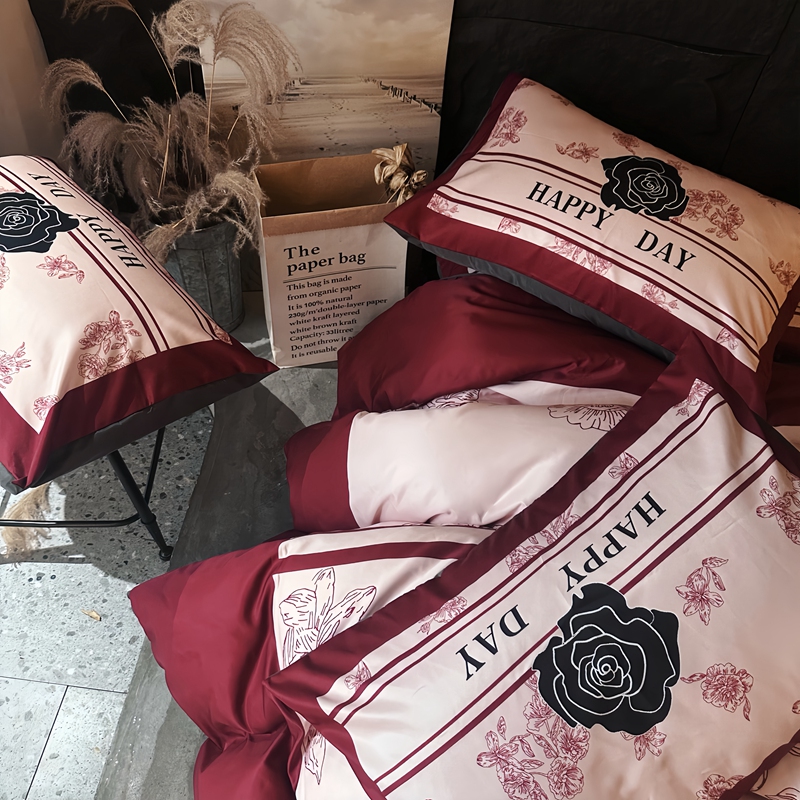 丽斐纺织 2024新款双面进口冰丝数码印花四件套水洗真丝四件套 冰丝红玫瑰