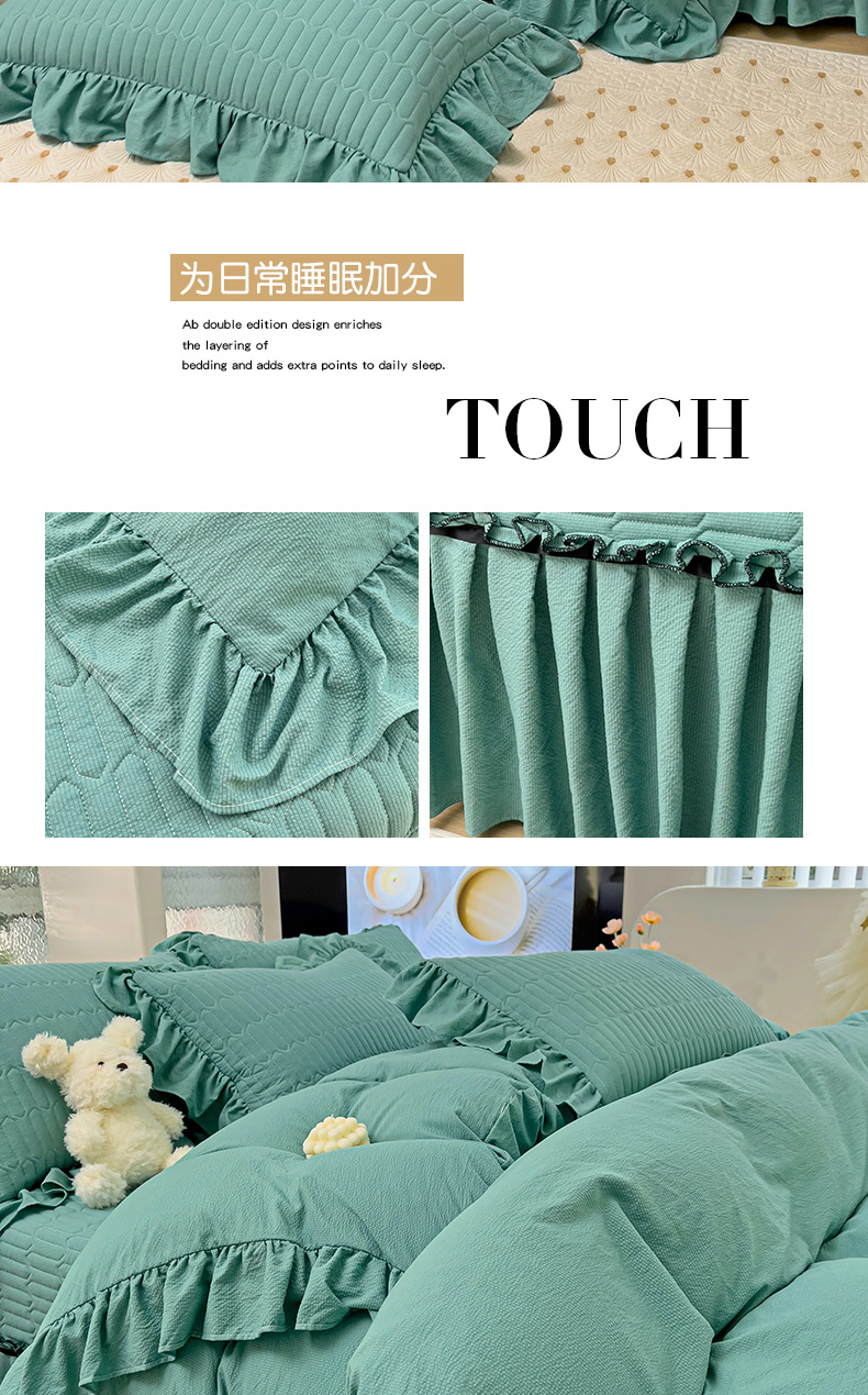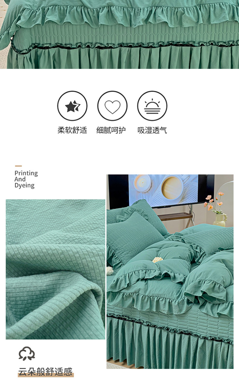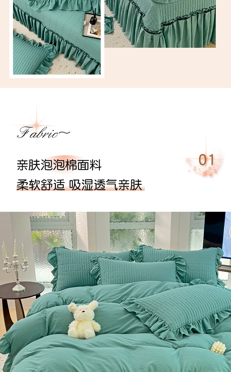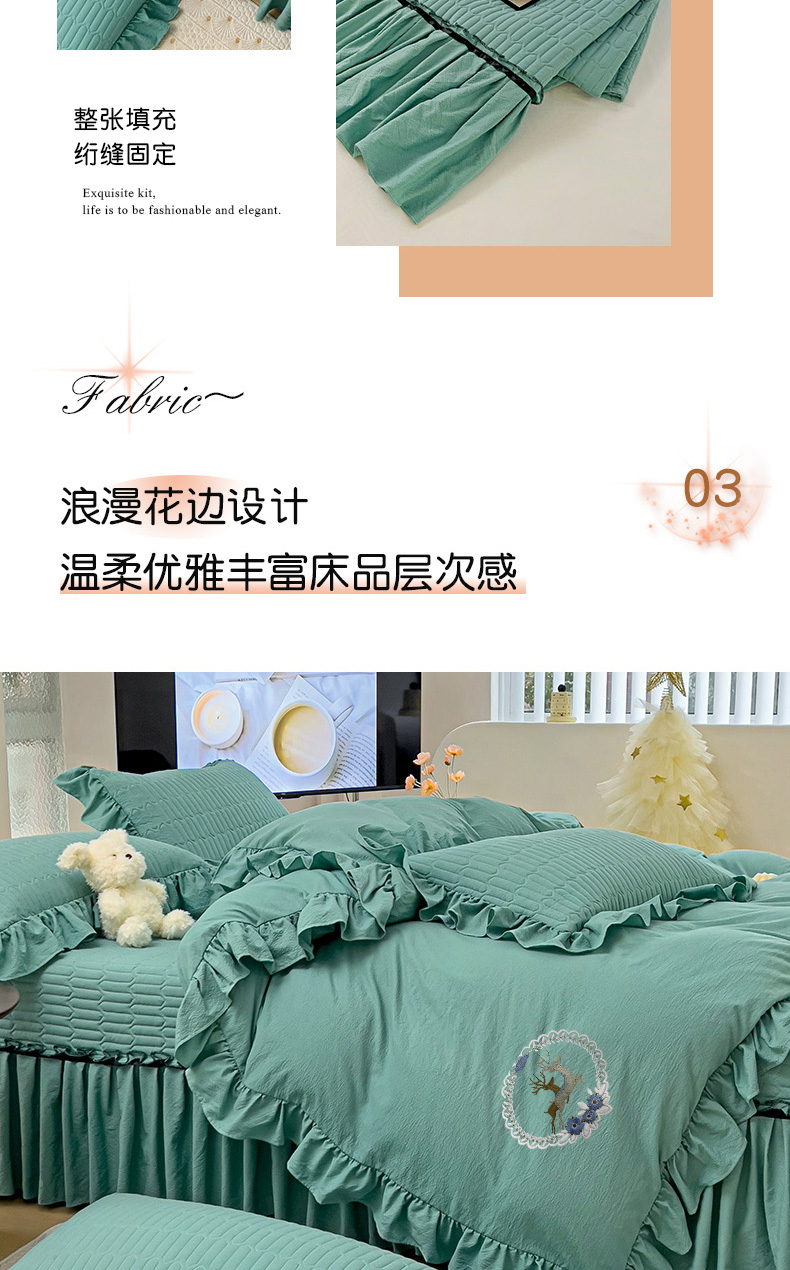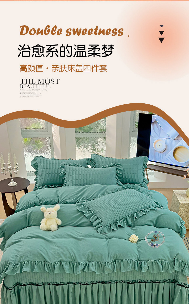 (总)言熙居家纺 2024直播新款韩版贴布绣雪纺花边床盖款四件套-初恋,初恋-粉,初恋-黄,初恋-蓝,初恋-绿,初恋-玉,初恋-紫