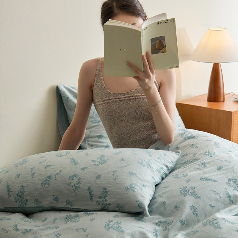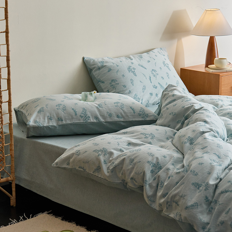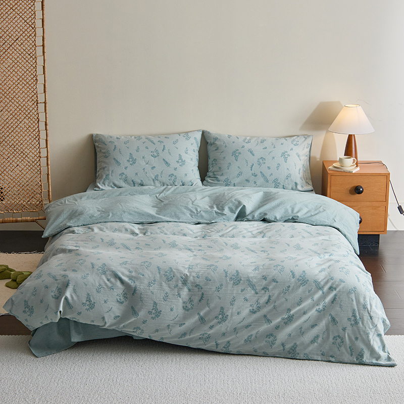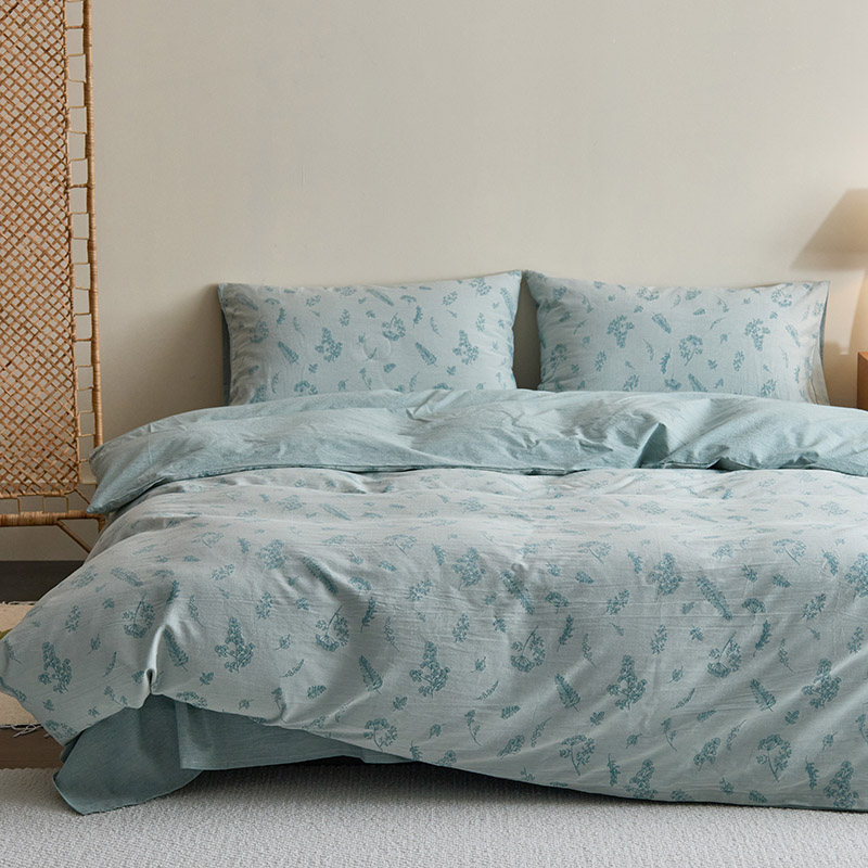 当前位置: 91家纺网 > 商品网购 > 床品套件 > 四件套 > 提花四件套 > 原研家居 2024新款水洗棉提花系列四件套 叶语-绿