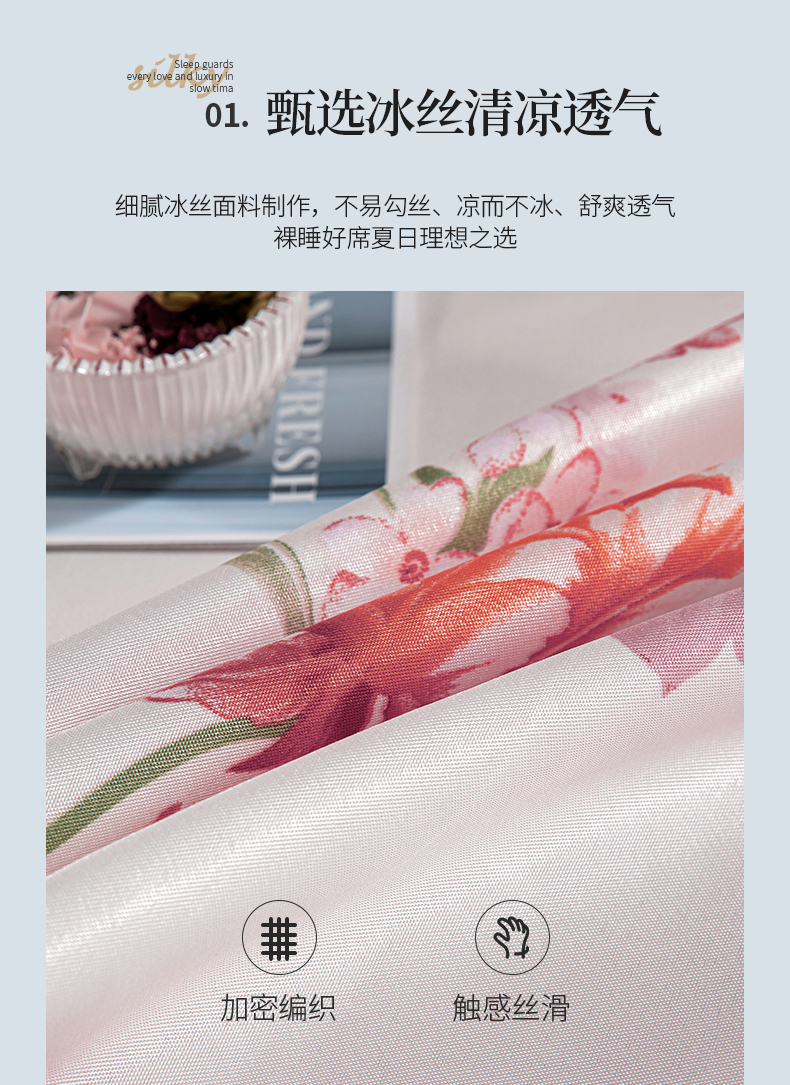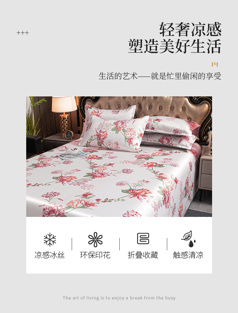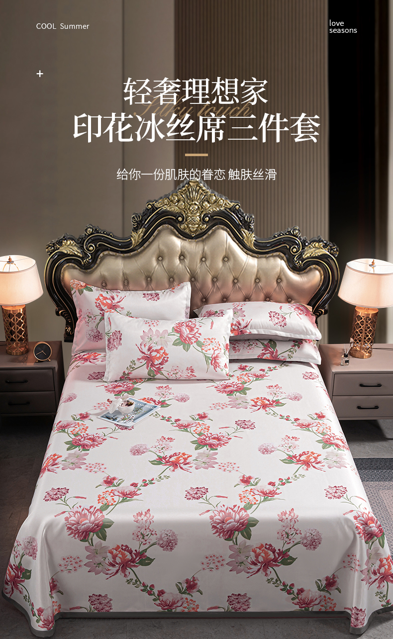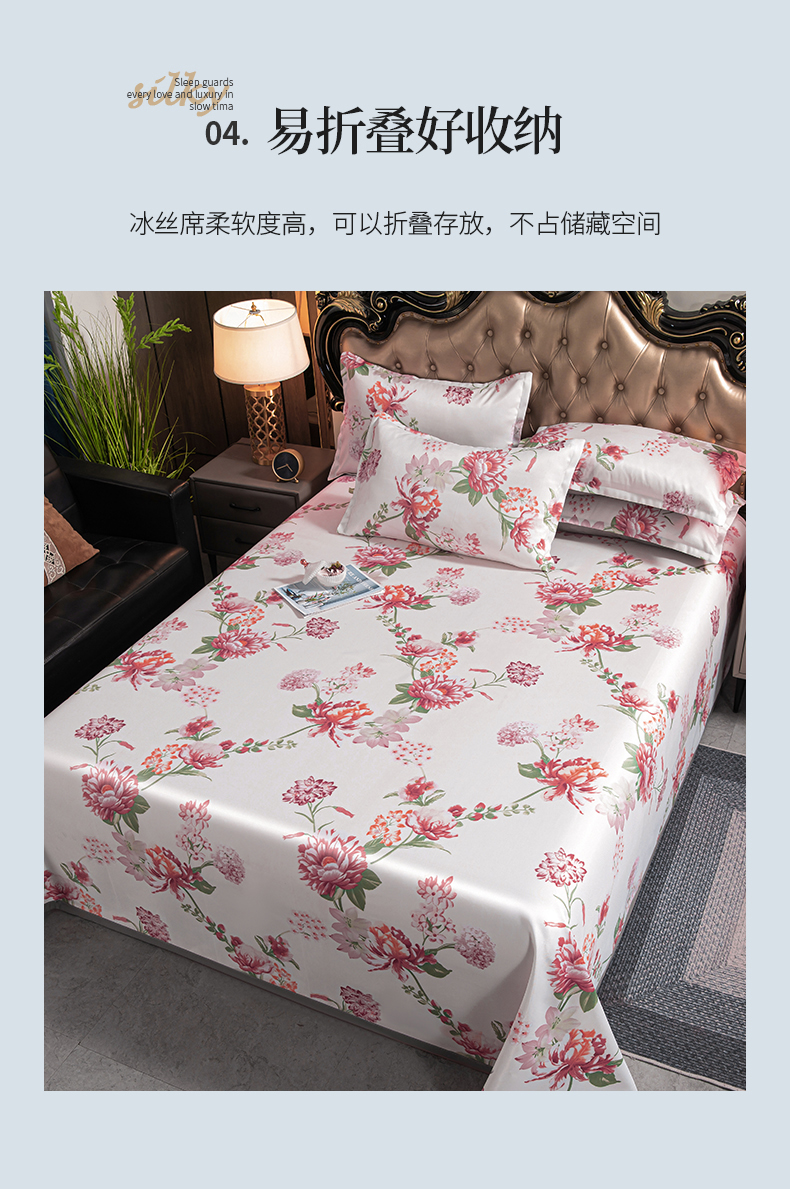 梵克保罗 2024新款印花冰丝凉席套件-系列一 花满庭