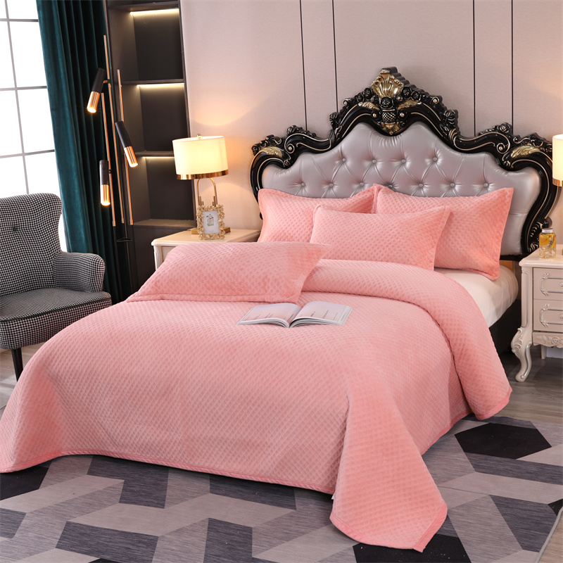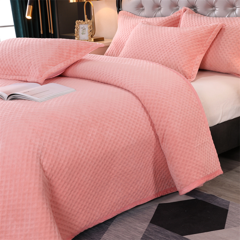 商品名称:芸锦豪 2024新款牛奶绒华夫格床盖 樱花粉
