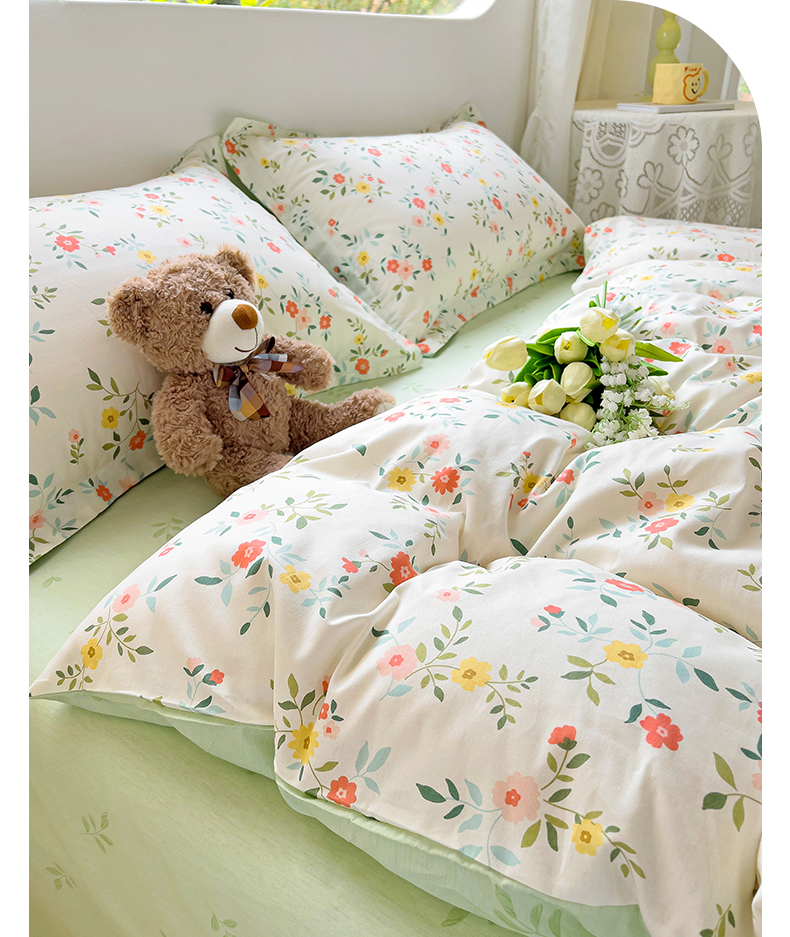 暖芯优选 204新款直播爆款全棉-ins印花系列四件套纯棉三件套床单床笠 花物语
