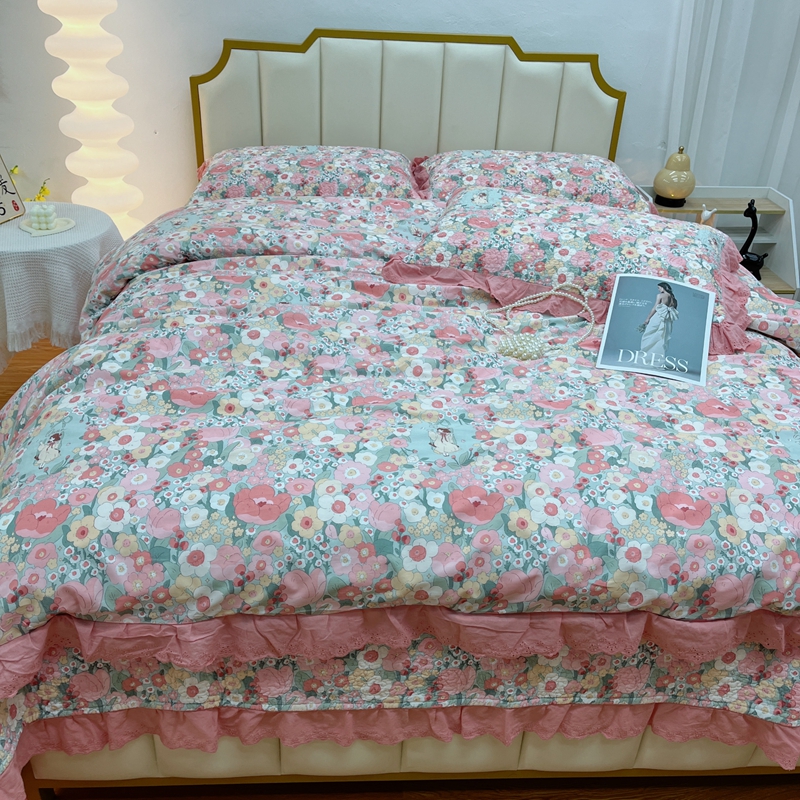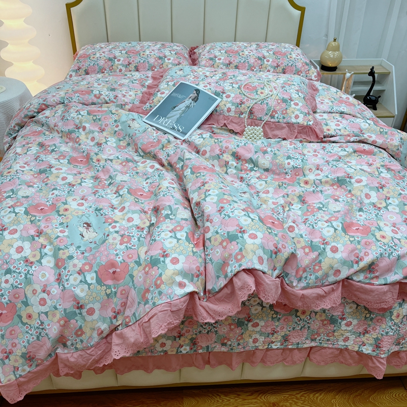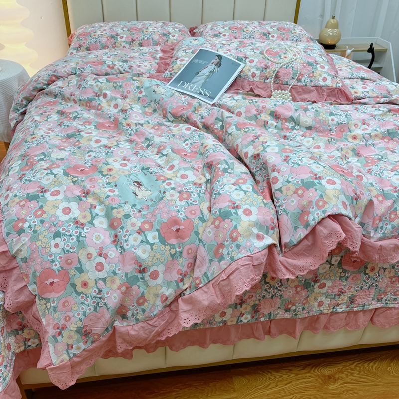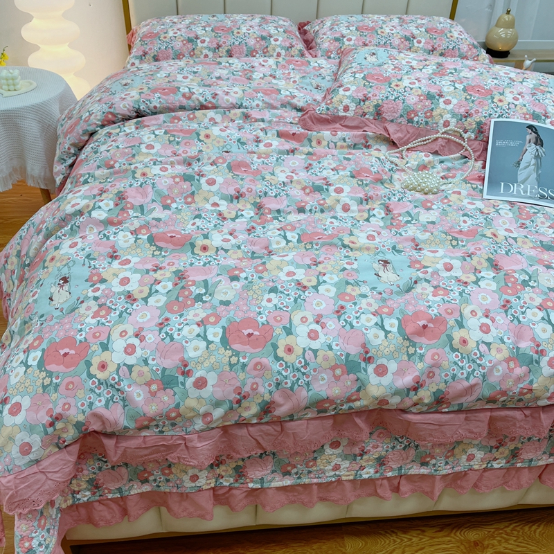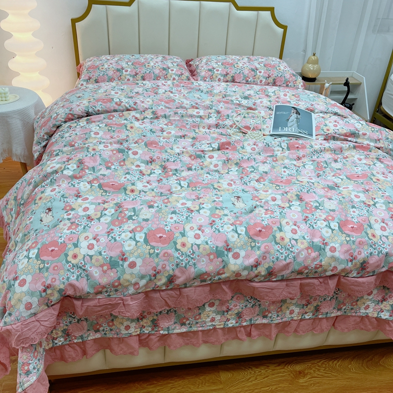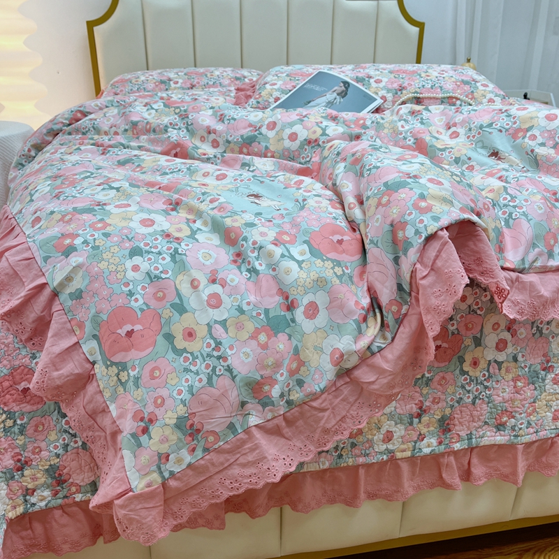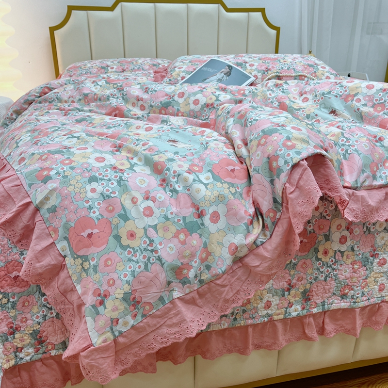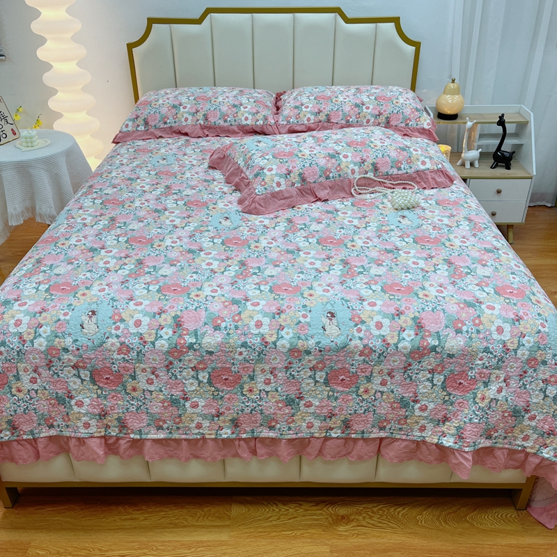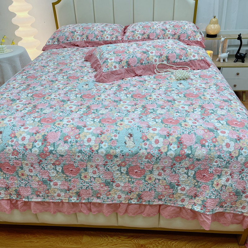 暖居 2024新款砂洗棉花被套全棉床盖四件套绗缝夹棉纯棉床盖三件套 安娜公主