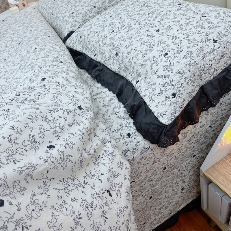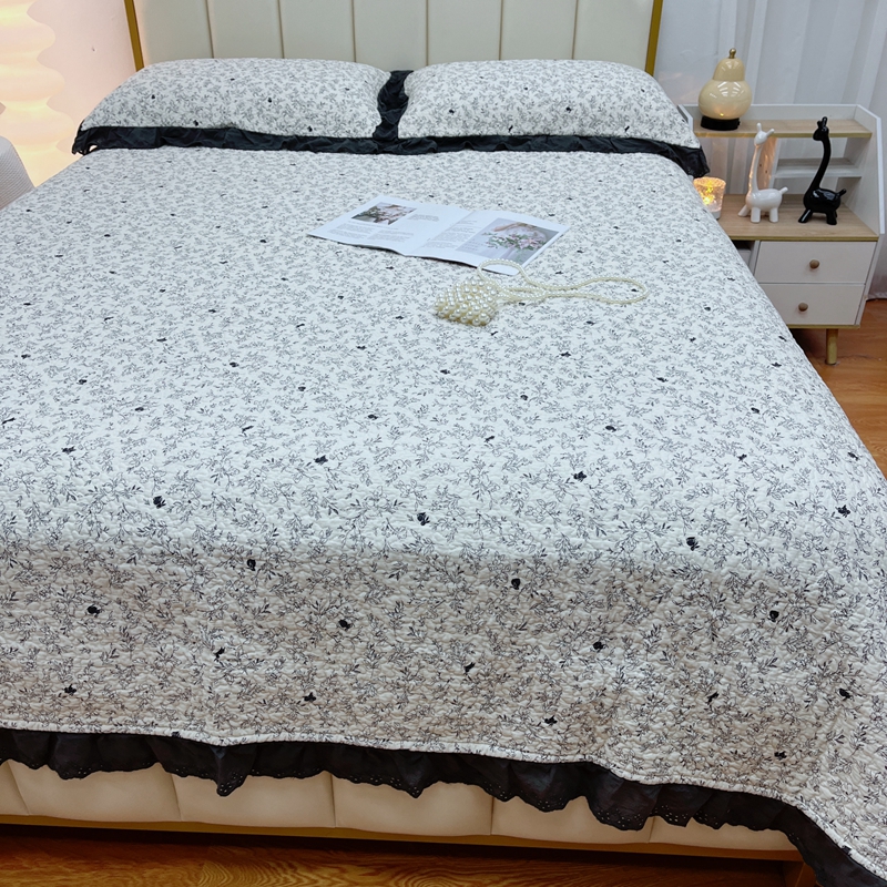 暖居 2024新款砂洗棉花被套全棉床盖四件套绗缝夹棉纯棉床盖三件套 南法假日