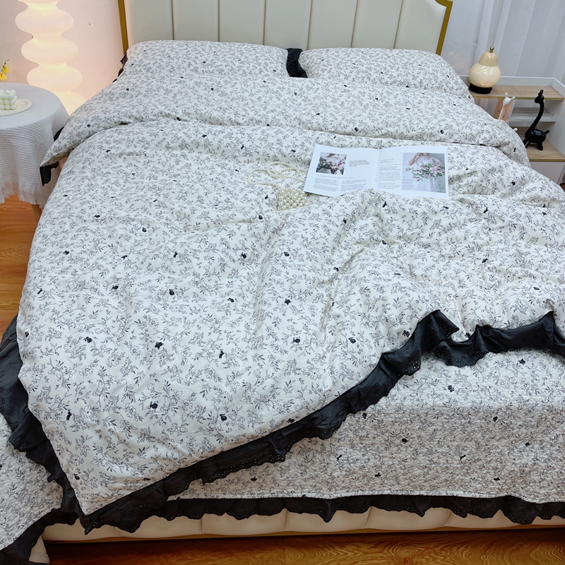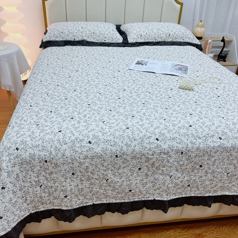 商品名称:暖居 2024新款砂洗棉花被套全棉床盖四件套绗缝夹棉纯棉床盖三件套 南法假日