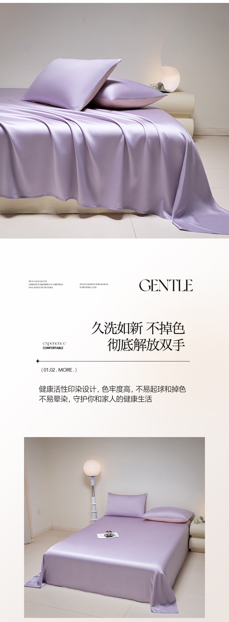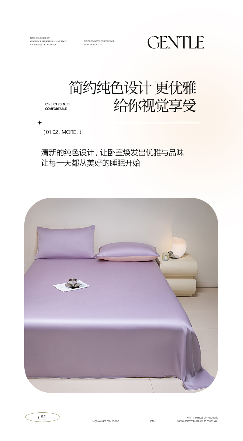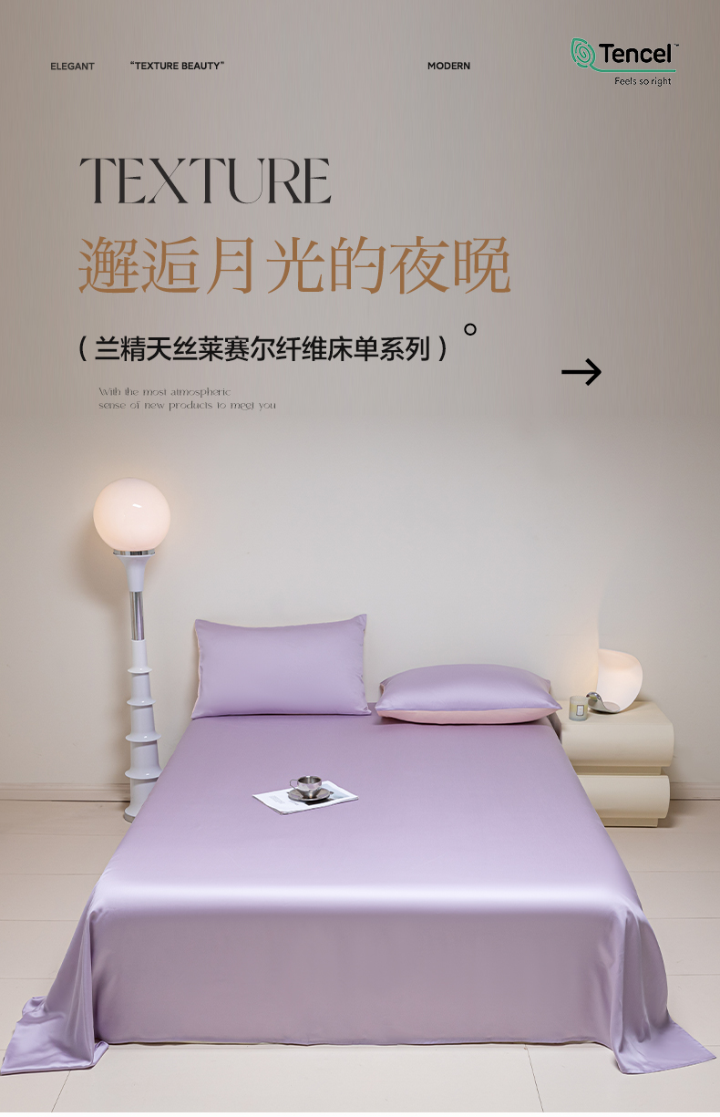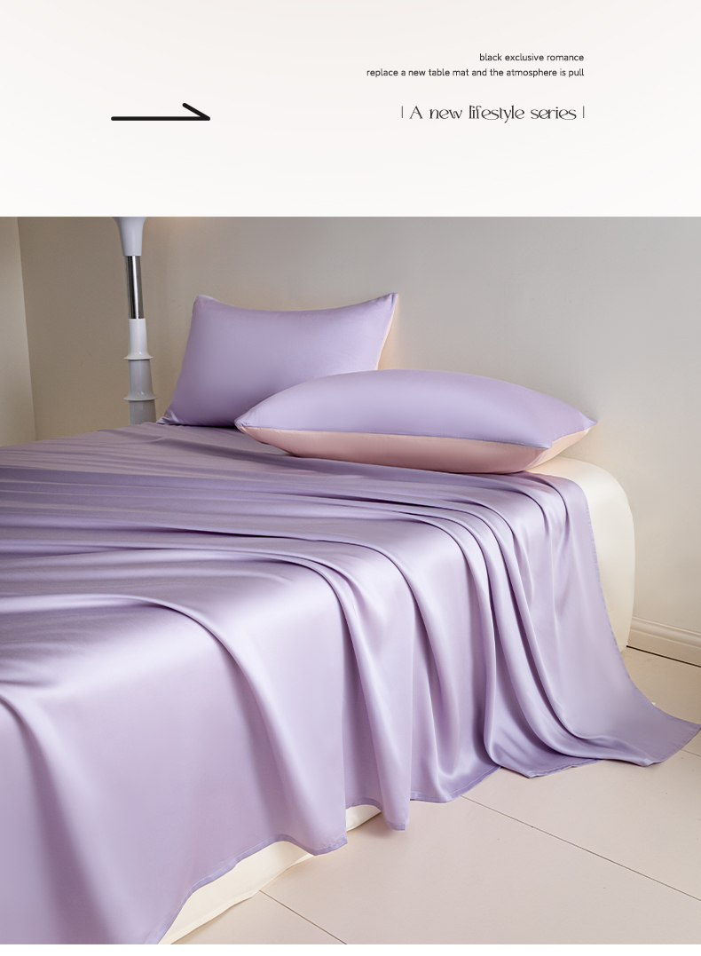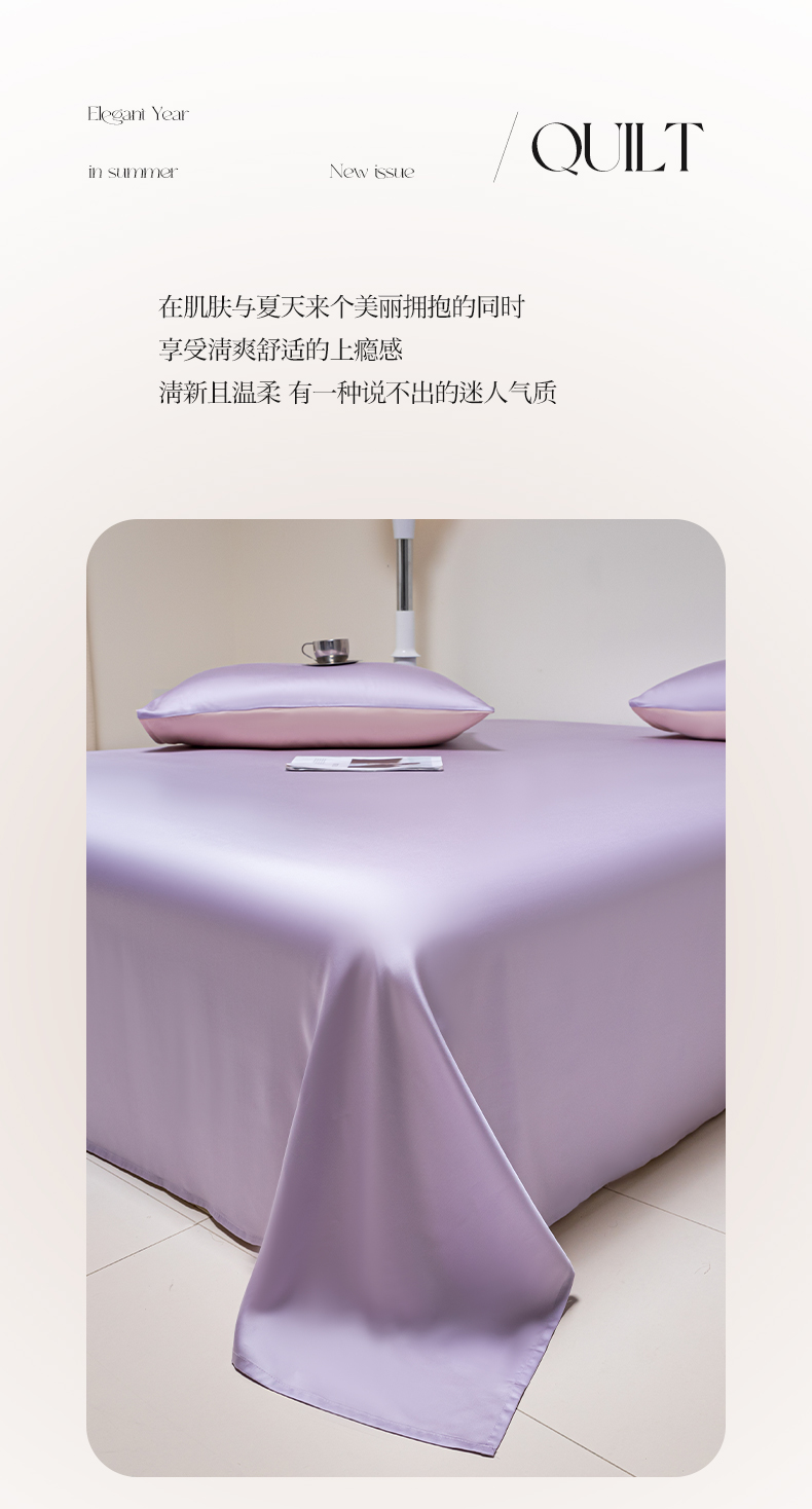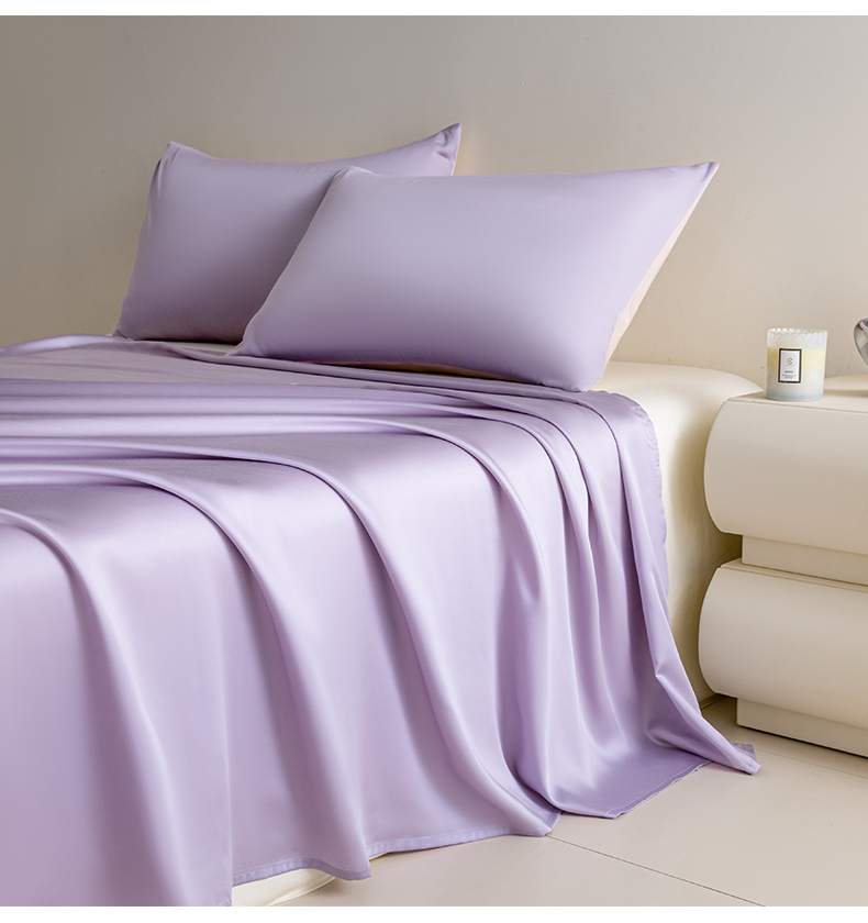 • 91家纺网 家纺一手货源 找家纺 佳汐蓝 2024新款AB版高支高密莱赛尔兰精天丝柔单床单 棚拍图 柔-风信紫