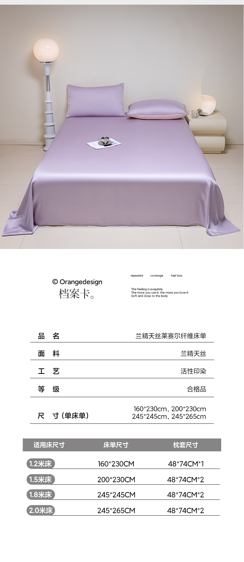 佳汐蓝 2024新款AB版高支高密莱赛尔兰精天丝柔单床单 棚拍图 柔-风信紫