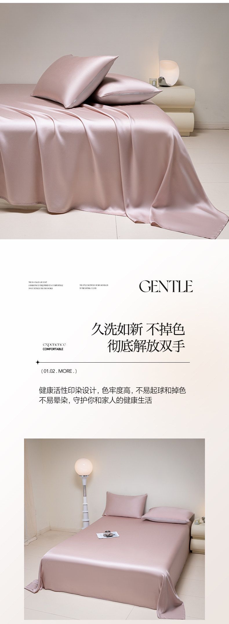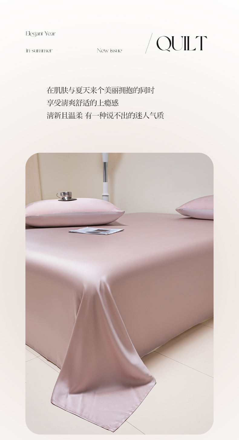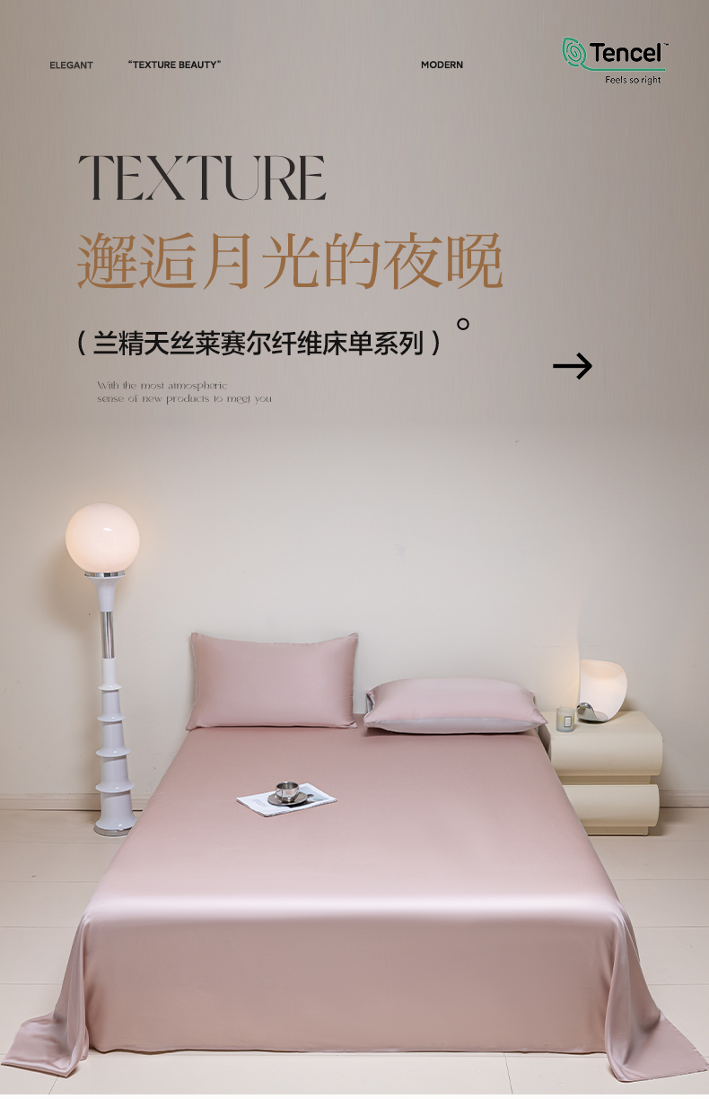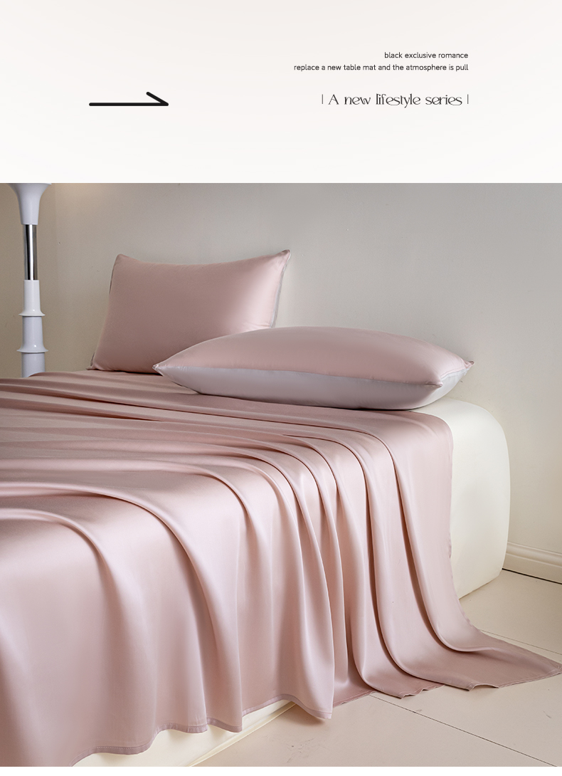 • 91家纺网 家纺一手货源 找家纺 佳汐蓝 2024新款AB版高支高密莱赛尔兰精天丝柔单床单 棚拍图 柔-玉桂粉