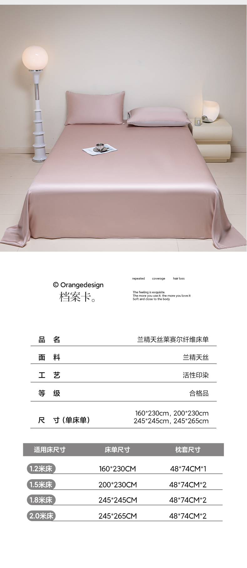 佳汐蓝 2024新款AB版高支高密莱赛尔兰精天丝柔单床单 棚拍图 柔-玉桂粉