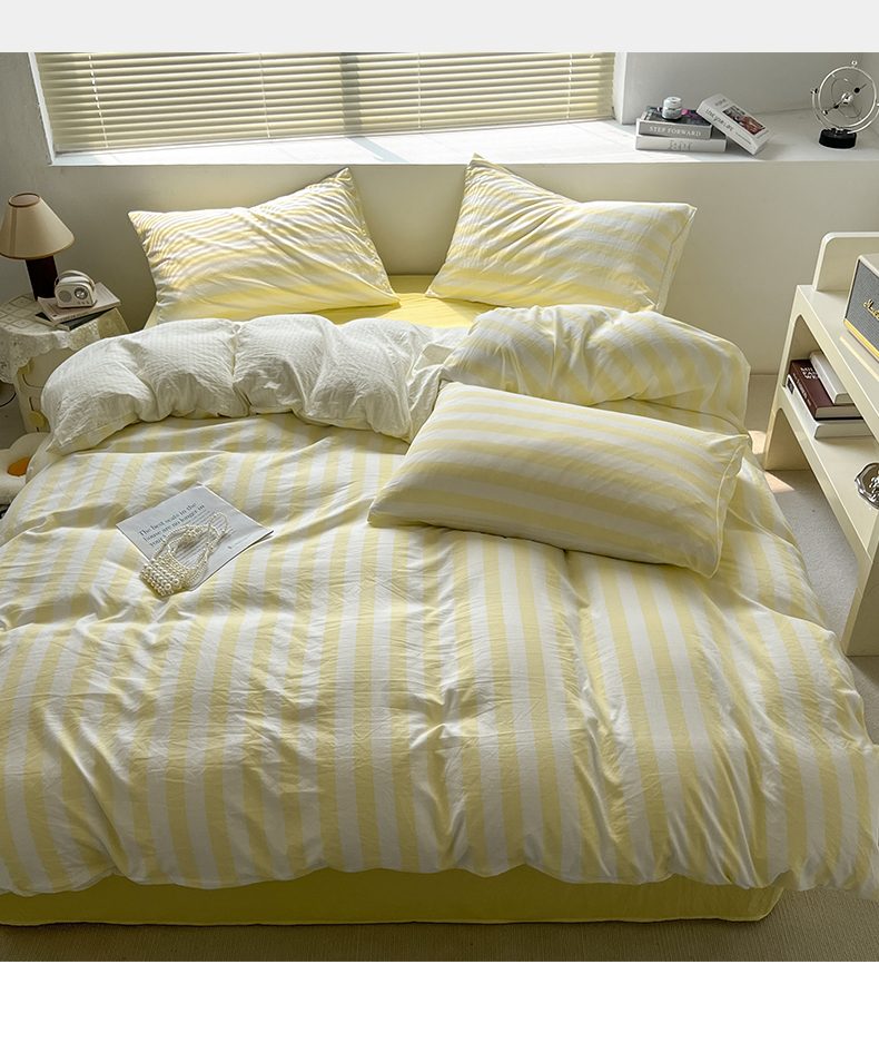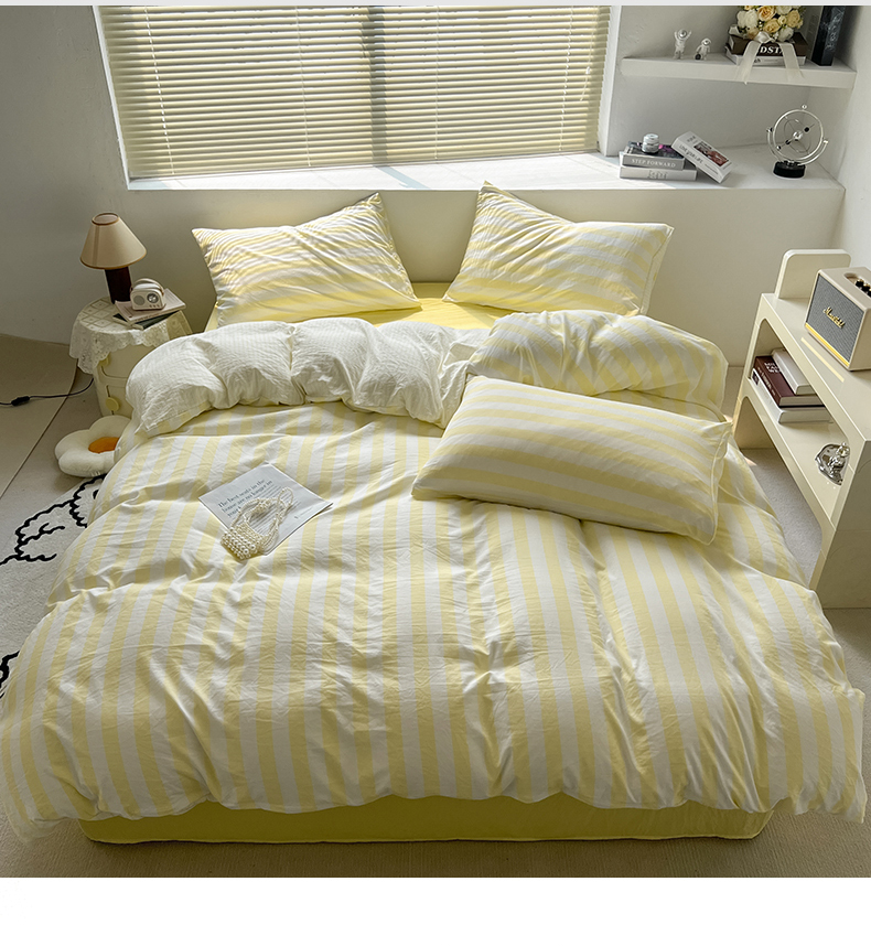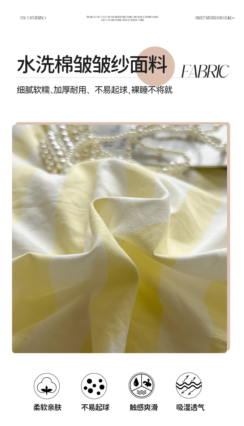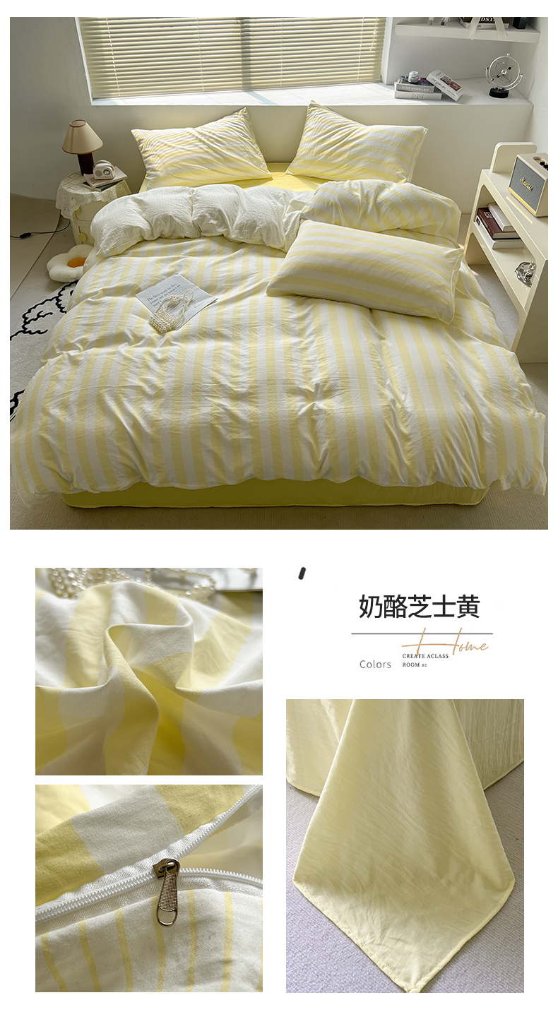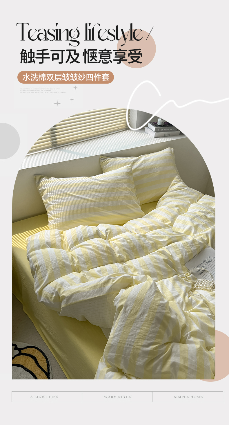 当前位置: 91家纺网 > 商品网购 > 床品套件 > 四件套 > 全棉普通四件套 > 多品 2024新款高克重水洗棉双层纱皱皱纱四件套 奶酪芝士黄