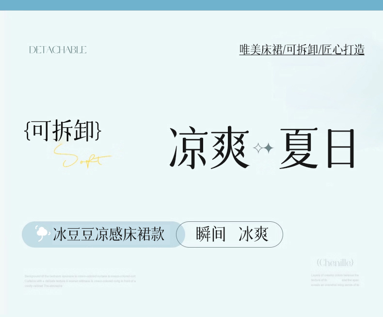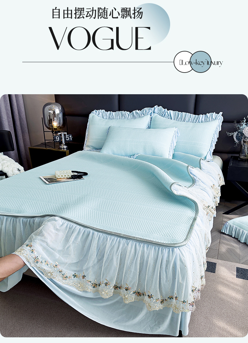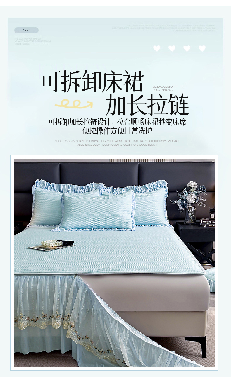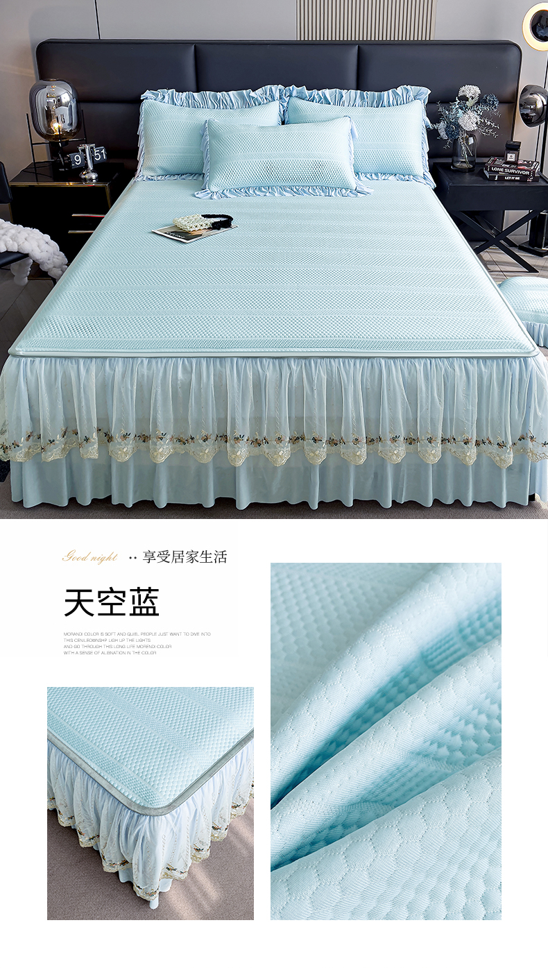 当前位置: 91家纺网 > 商品网购 > 床上用品 > 凉席 > 恒爱家纺 2024新款倾国倾城系列冰豆豆凉感床裙款 天空蓝