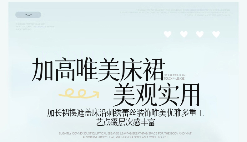 恒爱家纺 2024新款倾国倾城系列冰豆豆凉感床裙款 天空蓝