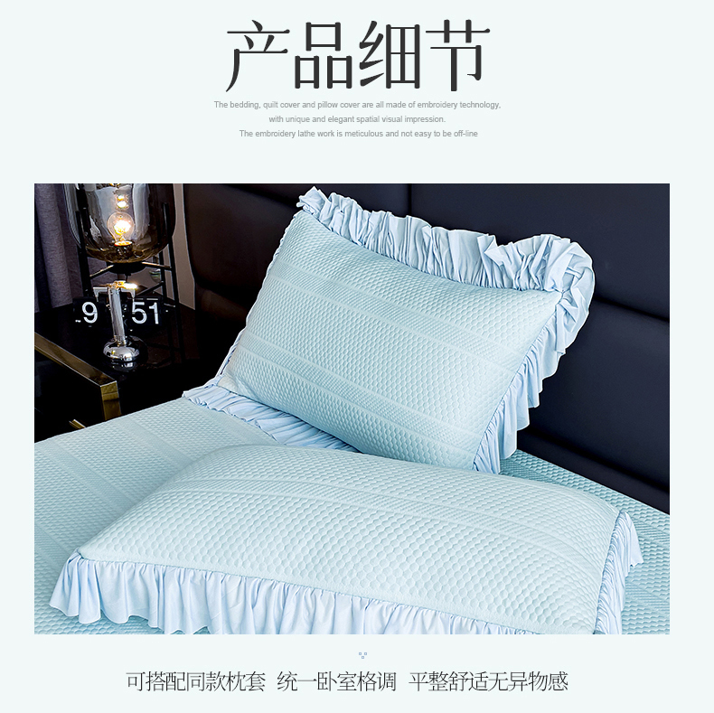 • 91家纺网 家纺一手货源 找家纺 恒爱家纺 2024新款倾国倾城系列冰豆豆凉感床裙款 天空蓝