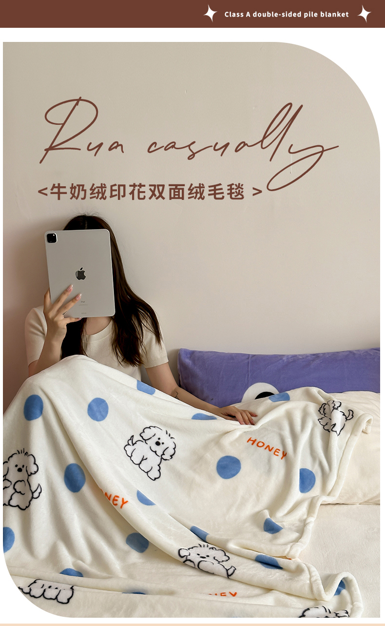 商品名称:桃喜 2024新款双面牛奶绒毛毯 西高地狗狗