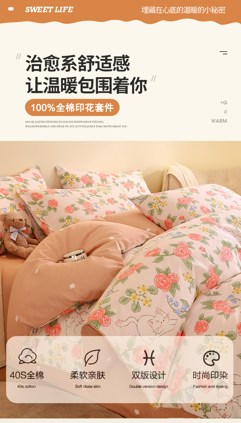 当前位置: 91家纺网 > 商品网购 > 床品套件 > 三件套 > 金鑫汇家纺 2024新款全棉印花四件套 微洛花园
