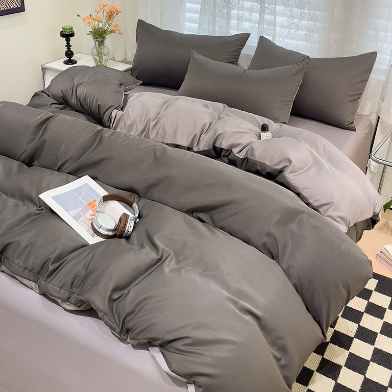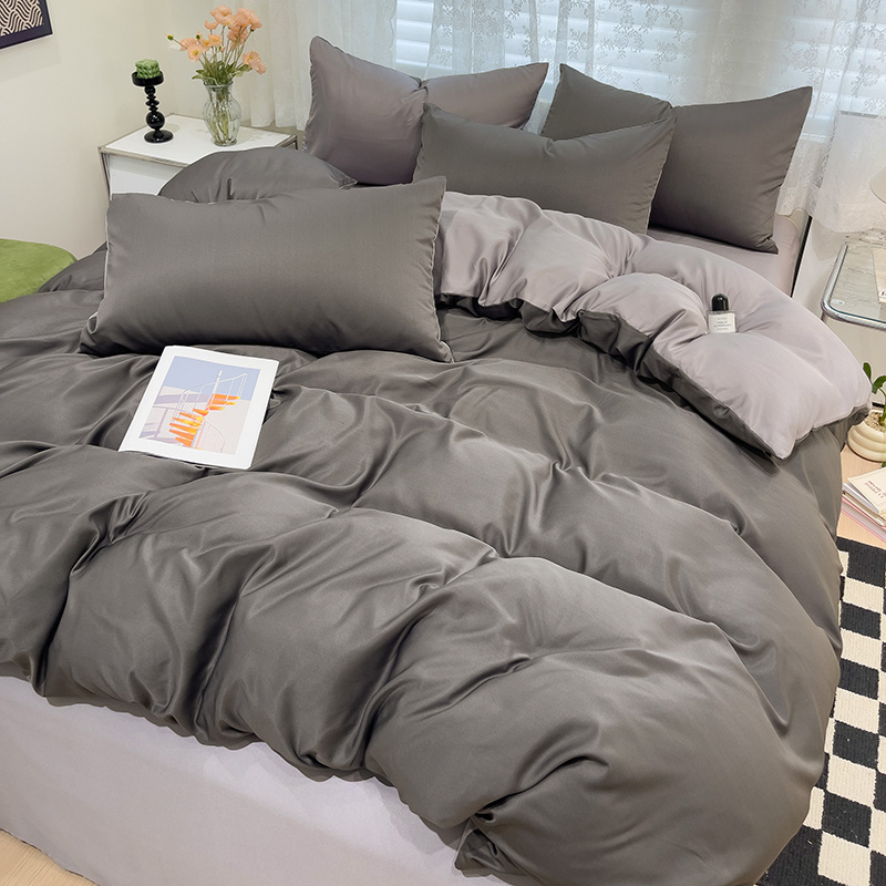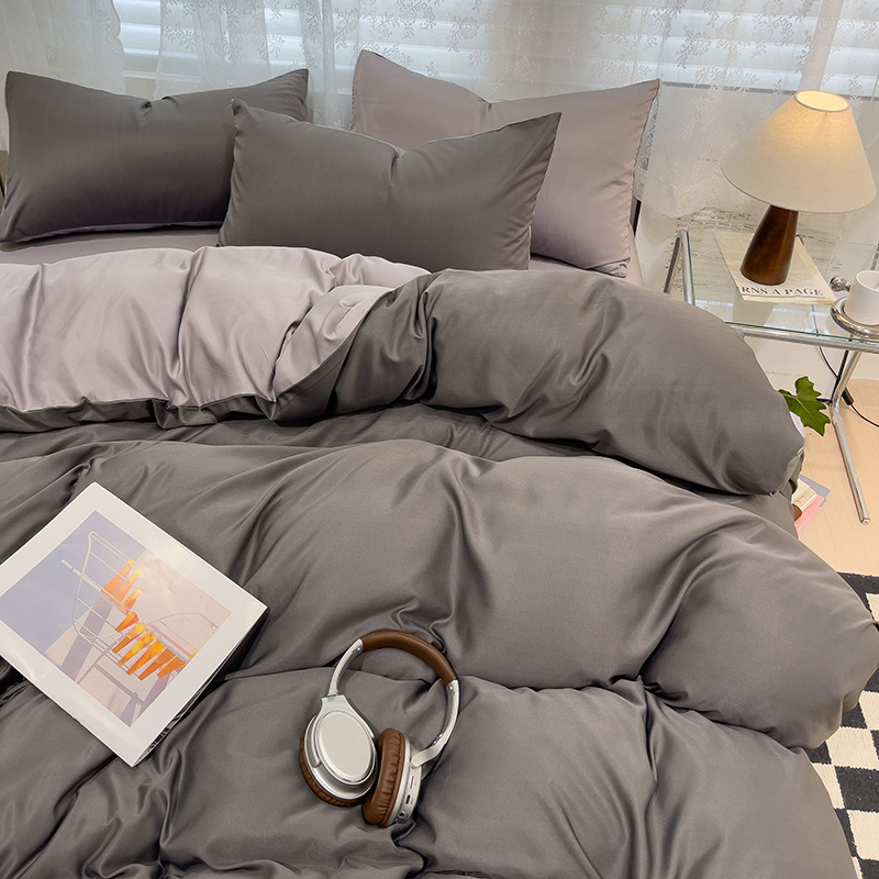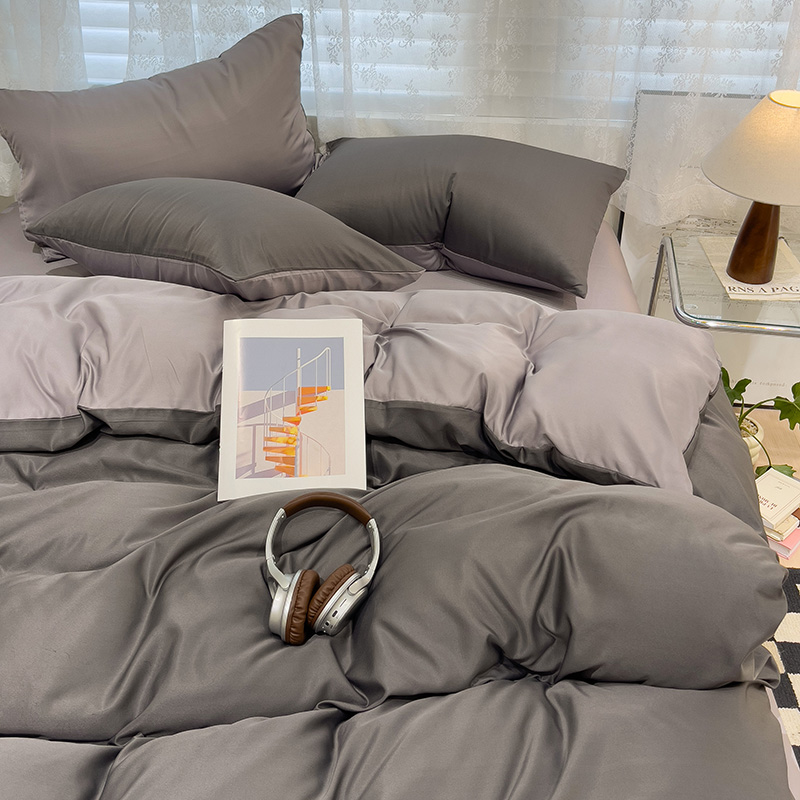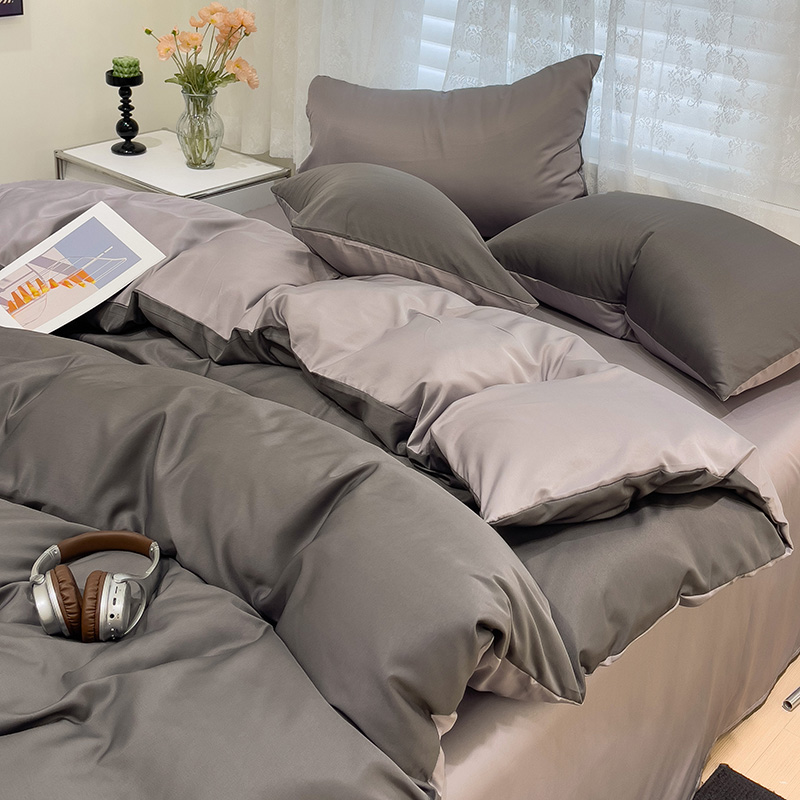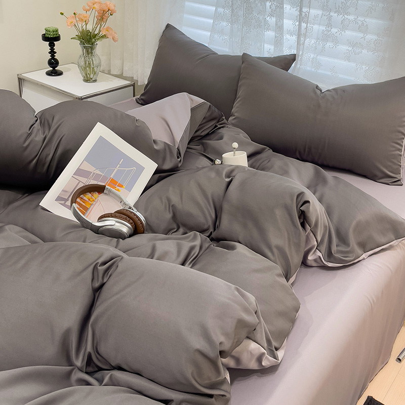 当前位置: 91家纺网 > 商品网购 > 床品套件 > 四件套 > 其它四件套 > 维娜斯家纺 2024新款水洗冰丝轻奢款纯色拼色系列四件套 中灰+山灰