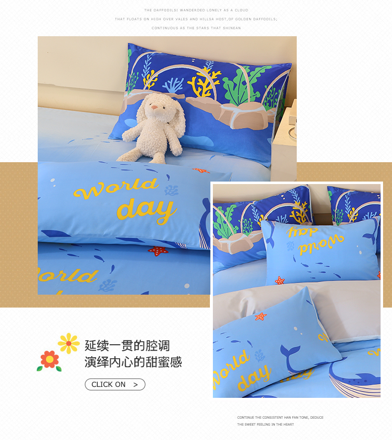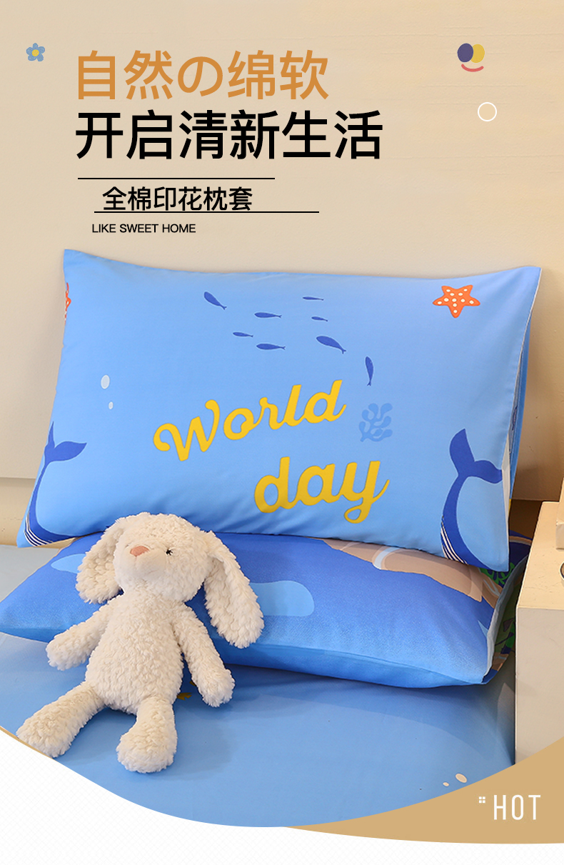 金鑫汇家纺 2024新款全棉印花单枕套 海族馆