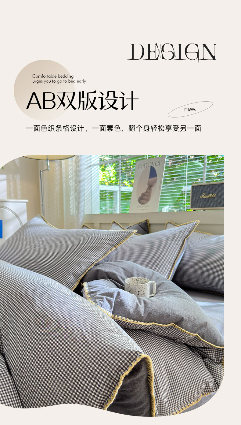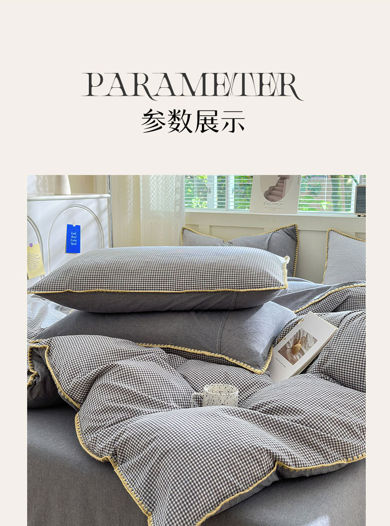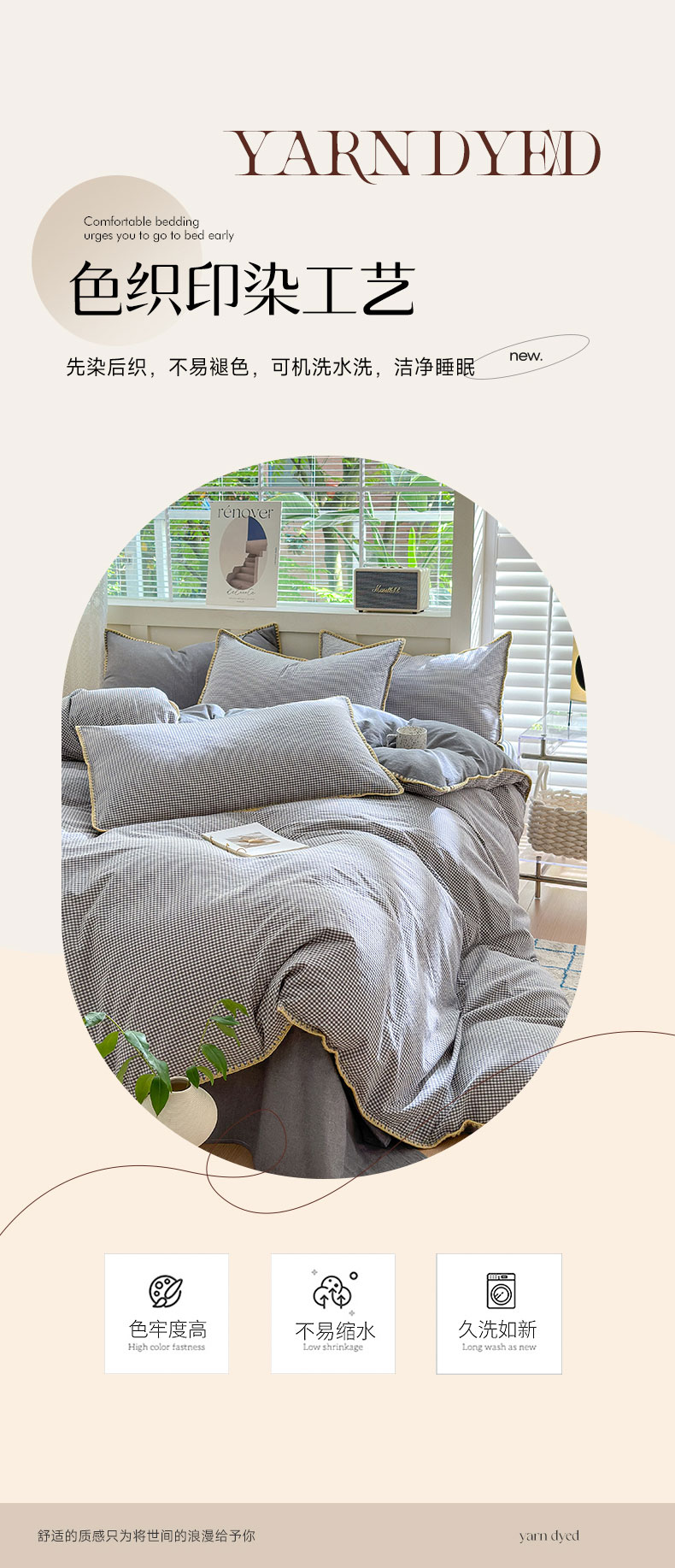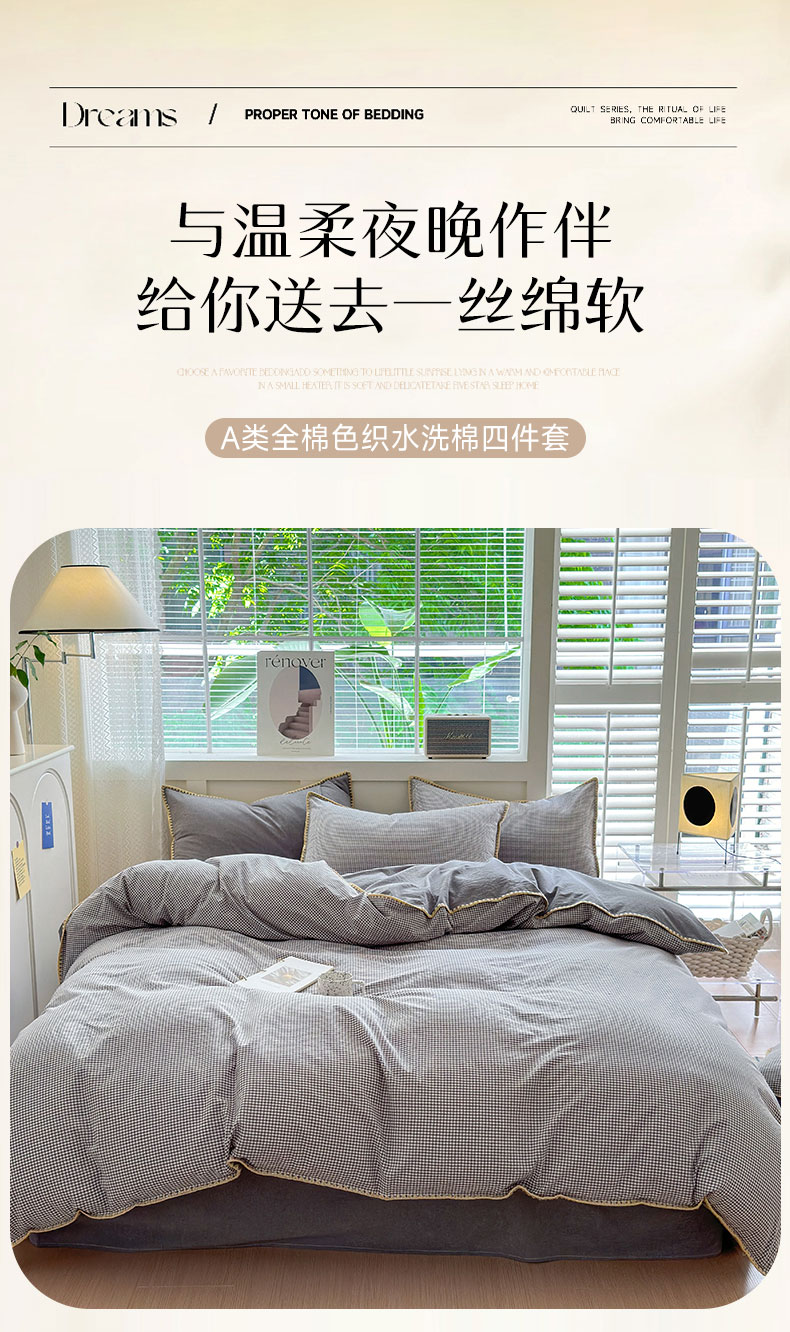 当前位置: 91家纺网 > 商品网购 > 床品套件 > 四件套 > 全棉普通四件套 > 宜家坊 2024新款A类全棉色织水洗棉贝壳边绣三角针工艺四件套可定制 遇见-中灰