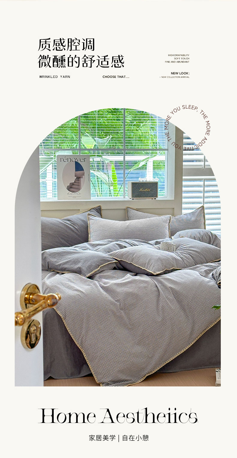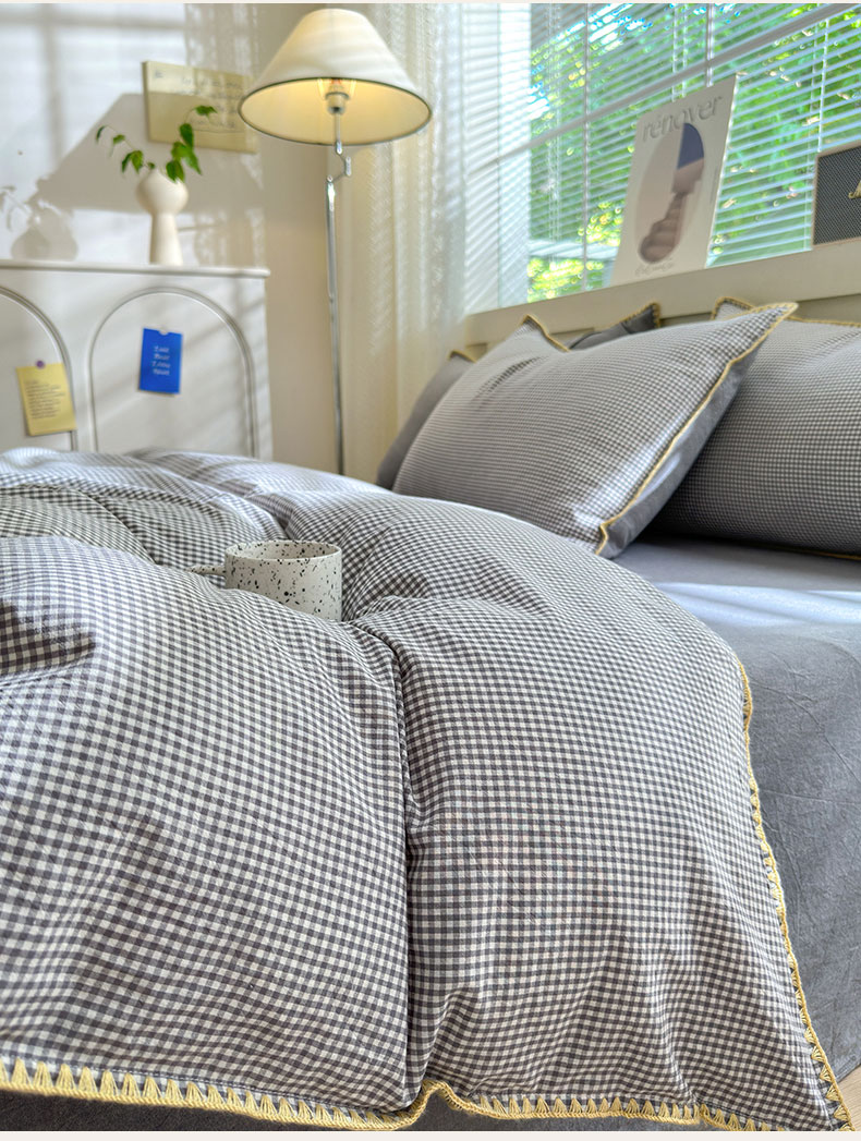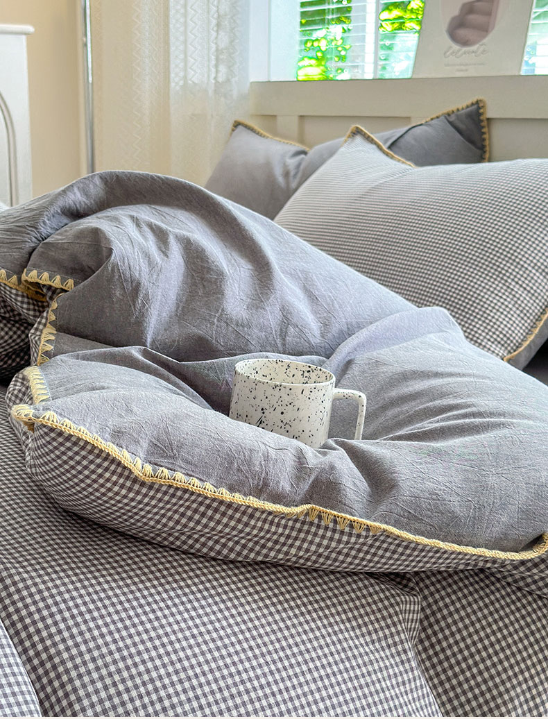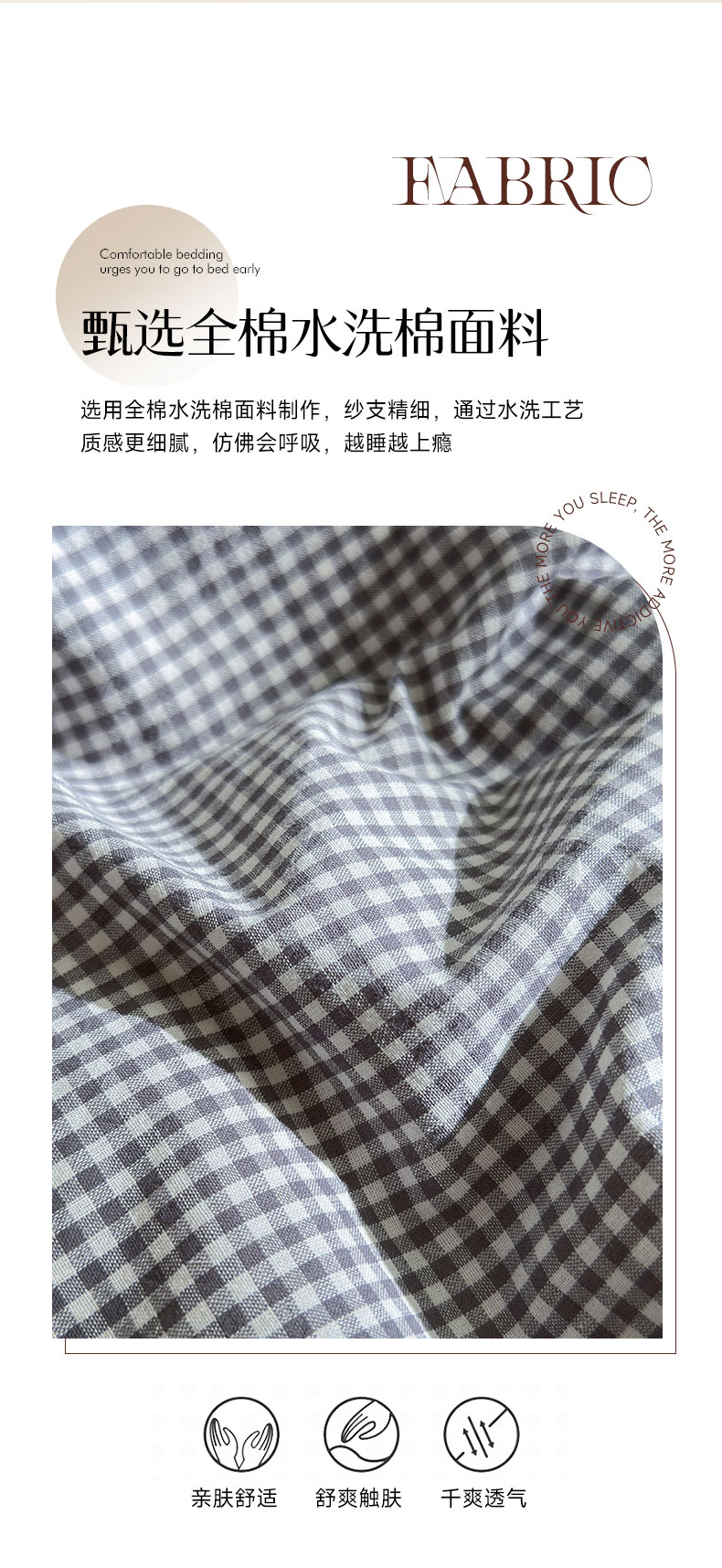 当前位置: 91家纺网 > 商品网购 > 床品套件 > 四件套 > 全棉普通四件套 > 宜家坊 2024新款A类全棉色织水洗棉贝壳边绣三角针工艺四件套可定制 遇见-中灰