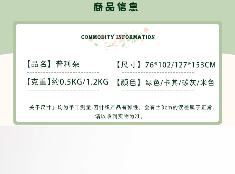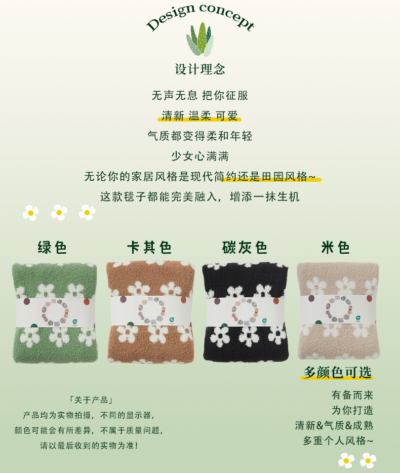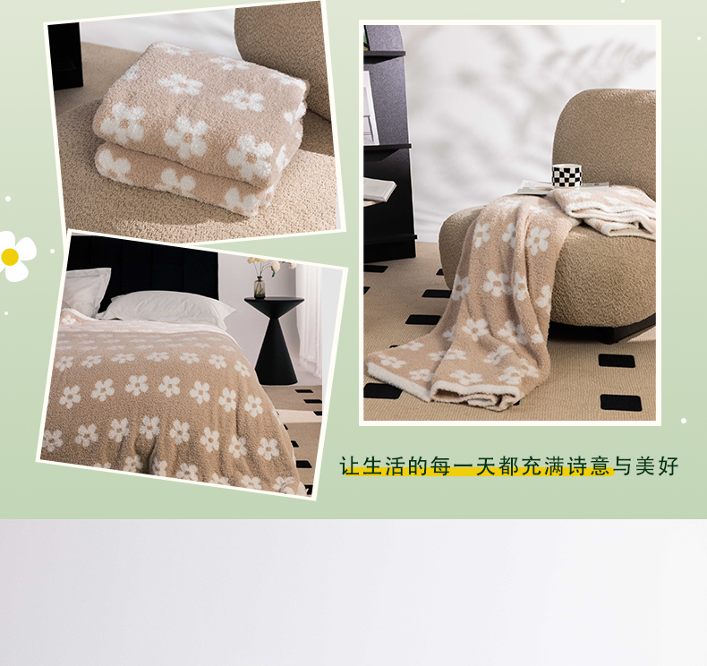 商品名称:暖绵绵家纺 2025新款半边绒清新甜美碎花多功能毯-普利朵 普利朵-绿色